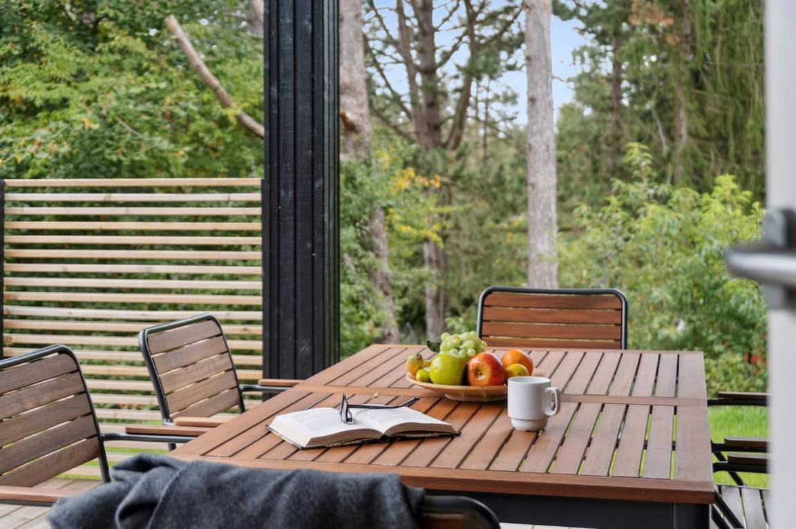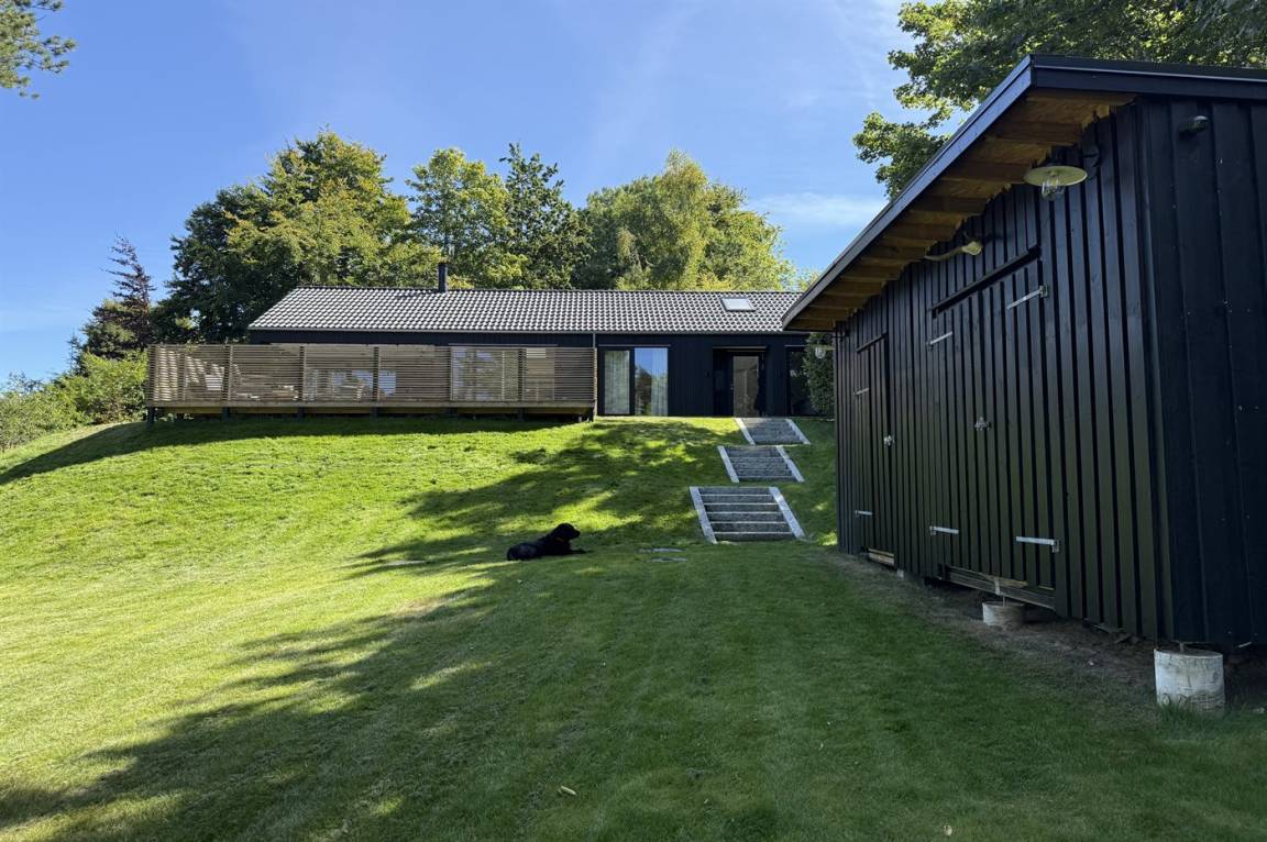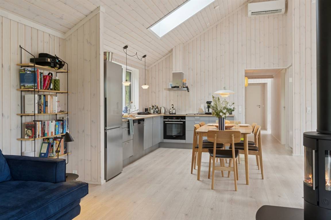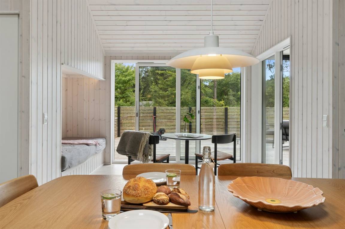 Neues, traumhaftes Ferienhaus (Baujahr 2024) im beliebten Ordrup – in Strand- und Waldnähe. Dieses fantastische, neu erbaute Ferienhaus liegt zentral im begehrten Ordrup, nur wenige Gehminuten vom Strand und Wald entfernt. Das Haus liegt auf einem ruhigen, ungestörten Grundstück in erhöhter Lage mit Blick in die Baumwipfel – sowohl vom Haus als auch von der großen Terrasse. Restaurants, Eisdiele und Einkaufsmöglichkeiten (saisonabhängig geöffnet) in nur 100 m Entfernung. Zur kinderfreundlichen, flach abfallenden Ordrup Strand mit langer Bade- und Bootsbrücke sind es lediglich 850 m.