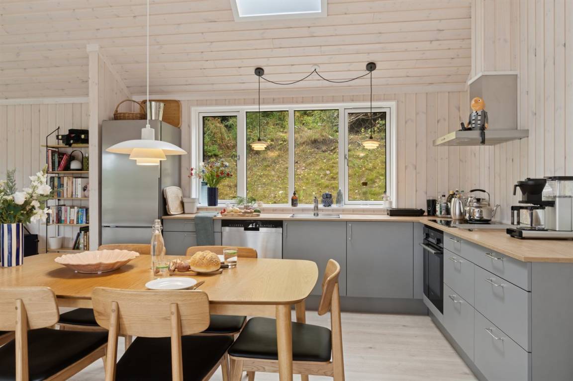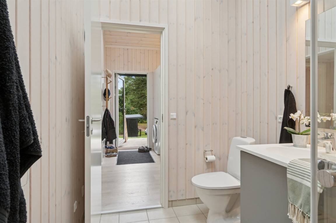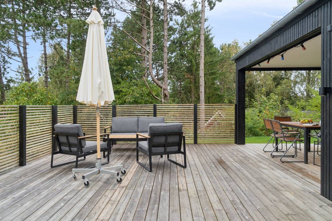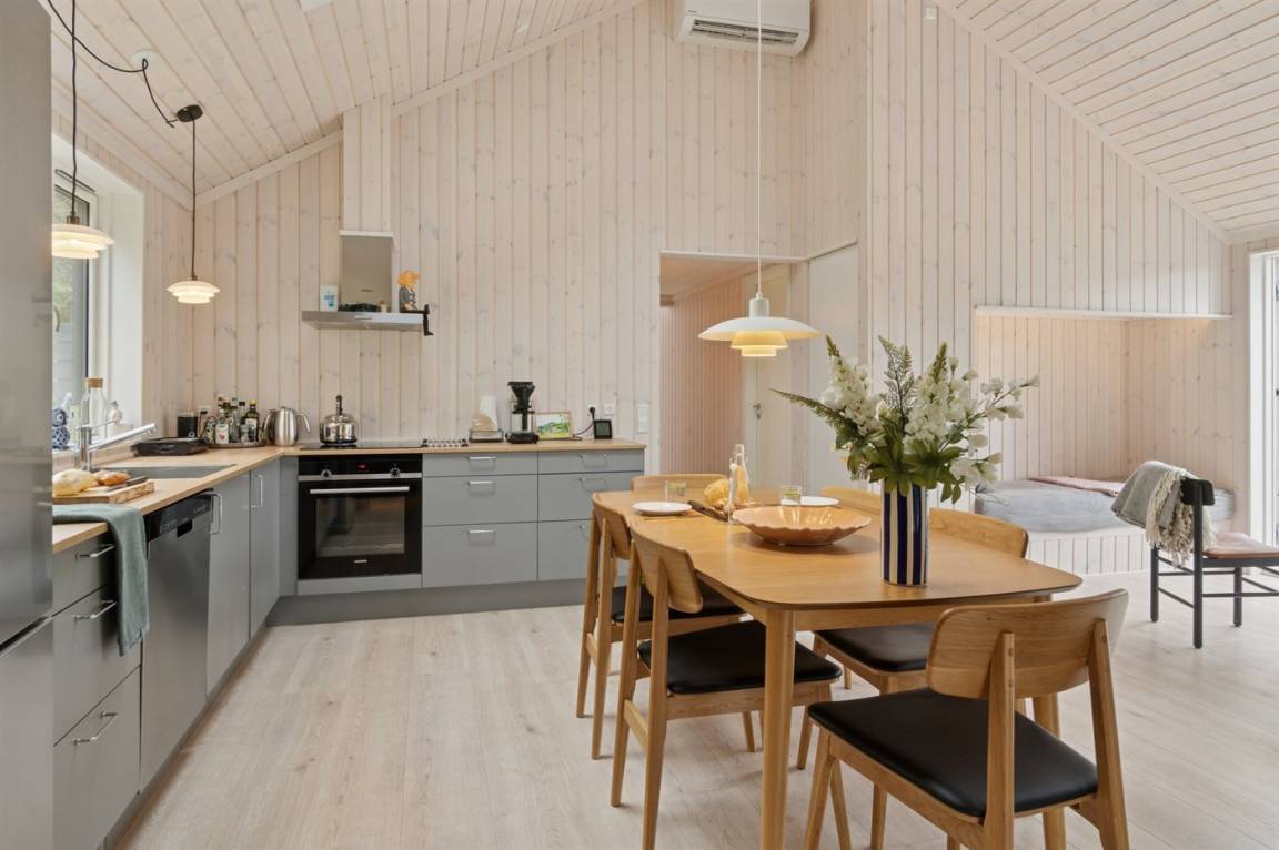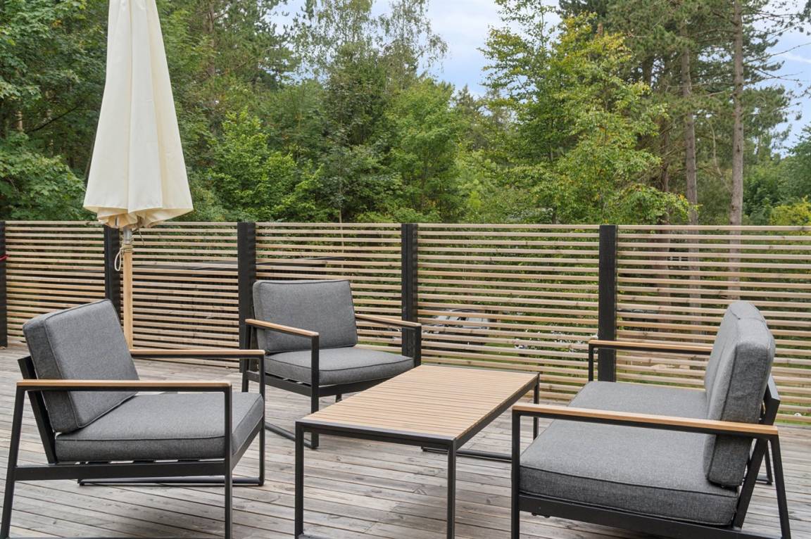 Neues, traumhaftes Ferienhaus (Baujahr 2024) im beliebten Ordrup – in Strand- und Waldnähe. Dieses fantastische, neu erbaute Ferienhaus liegt zentral im begehrten Ordrup, nur wenige Gehminuten vom Strand und Wald entfernt. Das Haus liegt auf einem ruhigen, ungestörten Grundstück in erhöhter Lage mit Blick in die Baumwipfel – sowohl vom Haus als auch von der großen Terrasse. Restaurants, Eisdiele und Einkaufsmöglichkeiten (saisonabhängig geöffnet) in nur 100 m Entfernung. Zur kinderfreundlichen, flach abfallenden Ordrup Strand mit langer Bade- und Bootsbrücke sind es lediglich 850 m.