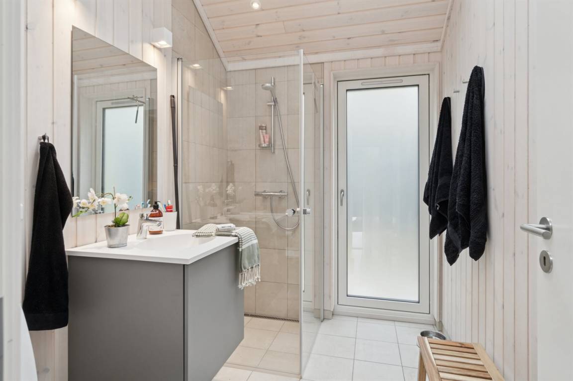 Das Haus ist modern, hell und großzügig gestaltet. Durch die großen Fensterfronten und die offene Dachkonstruktion entsteht ein besonders luftiges Wohngefühl. Der offene Wohn- und Essbereich mit moderner Küche bietet direkten Zugang zur großen Terrasse – teilweise überdacht, perfekt zum Entspannen, für Schatten oder Windschutz und zum Genießen langer, heller Sommerabende.