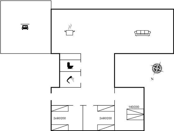 SchlafverhältnisseDie Schlafplätze verteilen sich auf 3 Schlafräume. 2 Schlafplätze in einem Doppelbett. 4 Schlafplätze in Einzelbetten.
