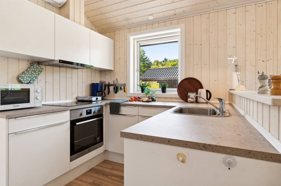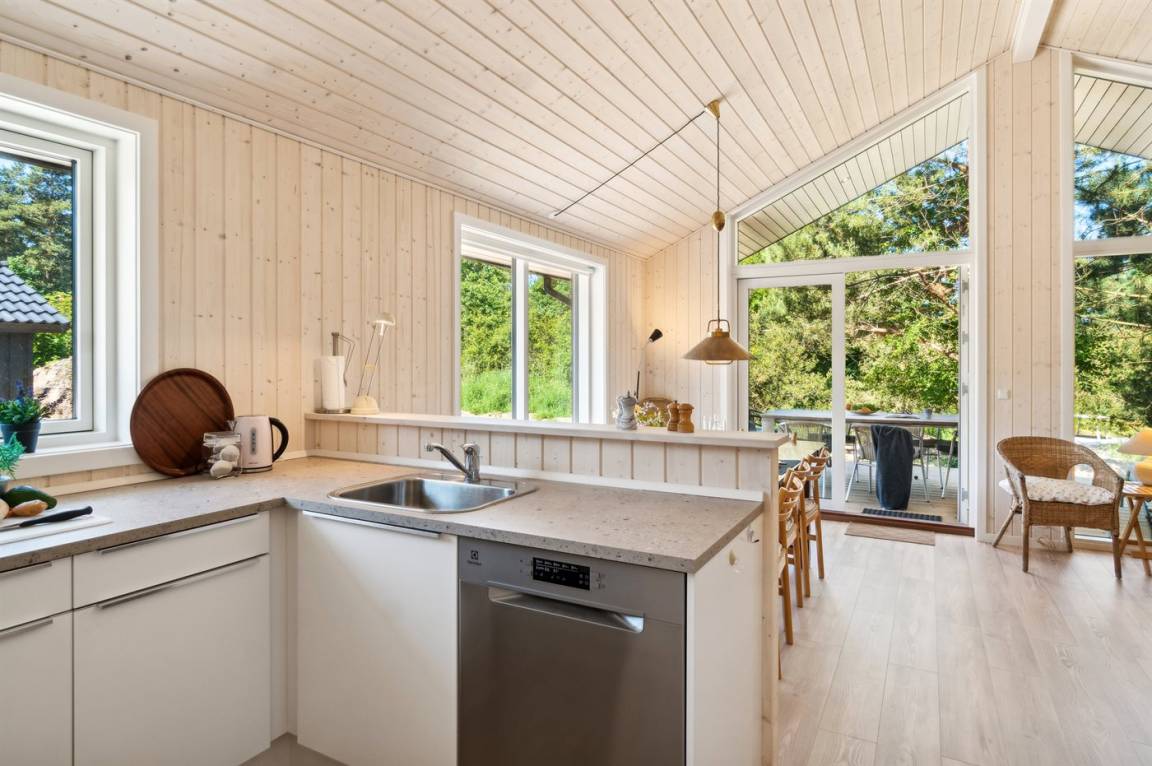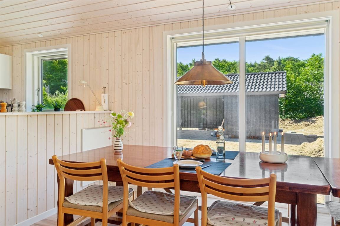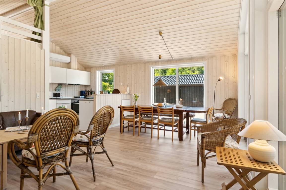 DraußenDie Ferienunterkunft liegt auf einem 1445 m² großen Naturgrundstück. Die Entfernung zum Meer beträgt 600 m. Es gibt einen Badesteg in der Nähe. Die nächste Einkaufsmöglichkeit liegt 3500 m entfernt. Im Sommer beträgt die Entfernung jedoch nur 400 Meter, da es in Ordrup einen "Sommerkaufmann" gibt. In einem Abstand von 3400 m gibt es einen Golfplatz. Es steht ein 20 m² Terrassenareal zur Verfügung. Außerdem gibt es 11 m² überdachte Terrasse. Die Entfernung zu einem Spielplatz beträgt 450 m. Es steht ein Grill zur Verfügung. Es steht ein Carport zur Verfügung. Es ist ein Ladestecker für Elektroautos installiert. Ladestecker Typ 2. Mit einer Ladeleistung von 11 kW. Parkplatz auf dem Grundstück.