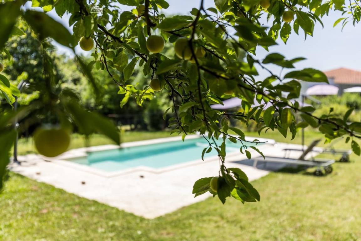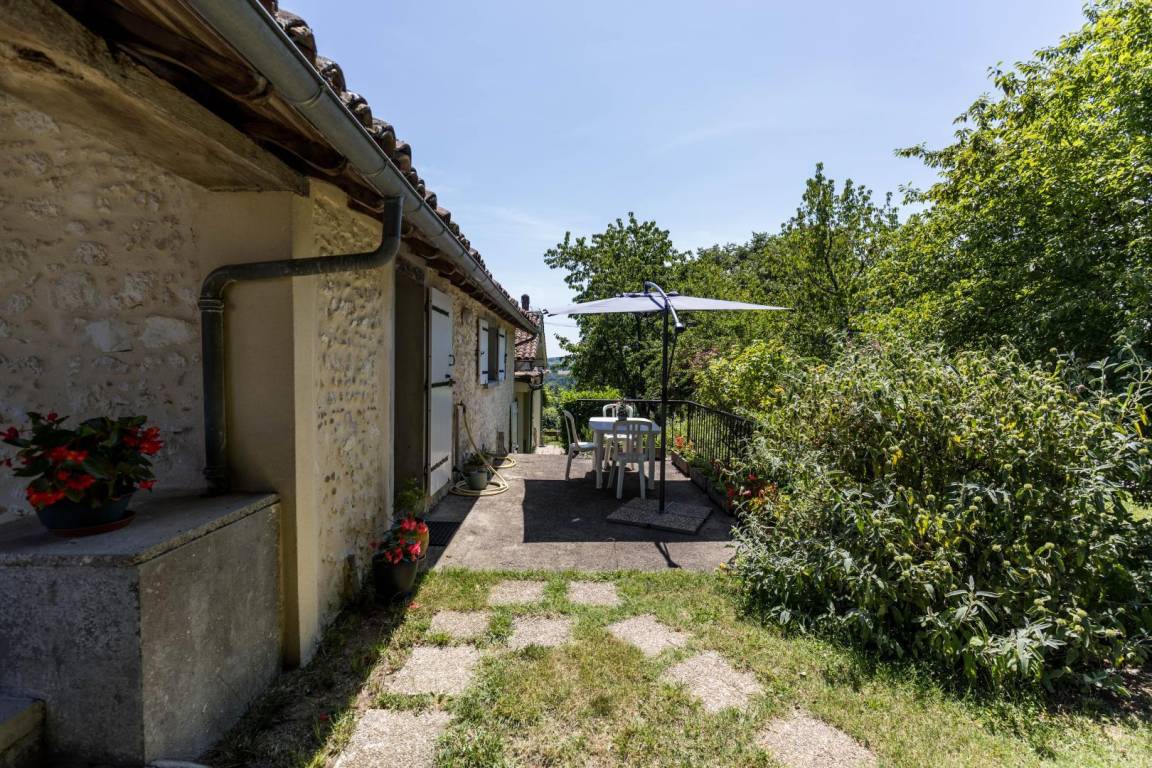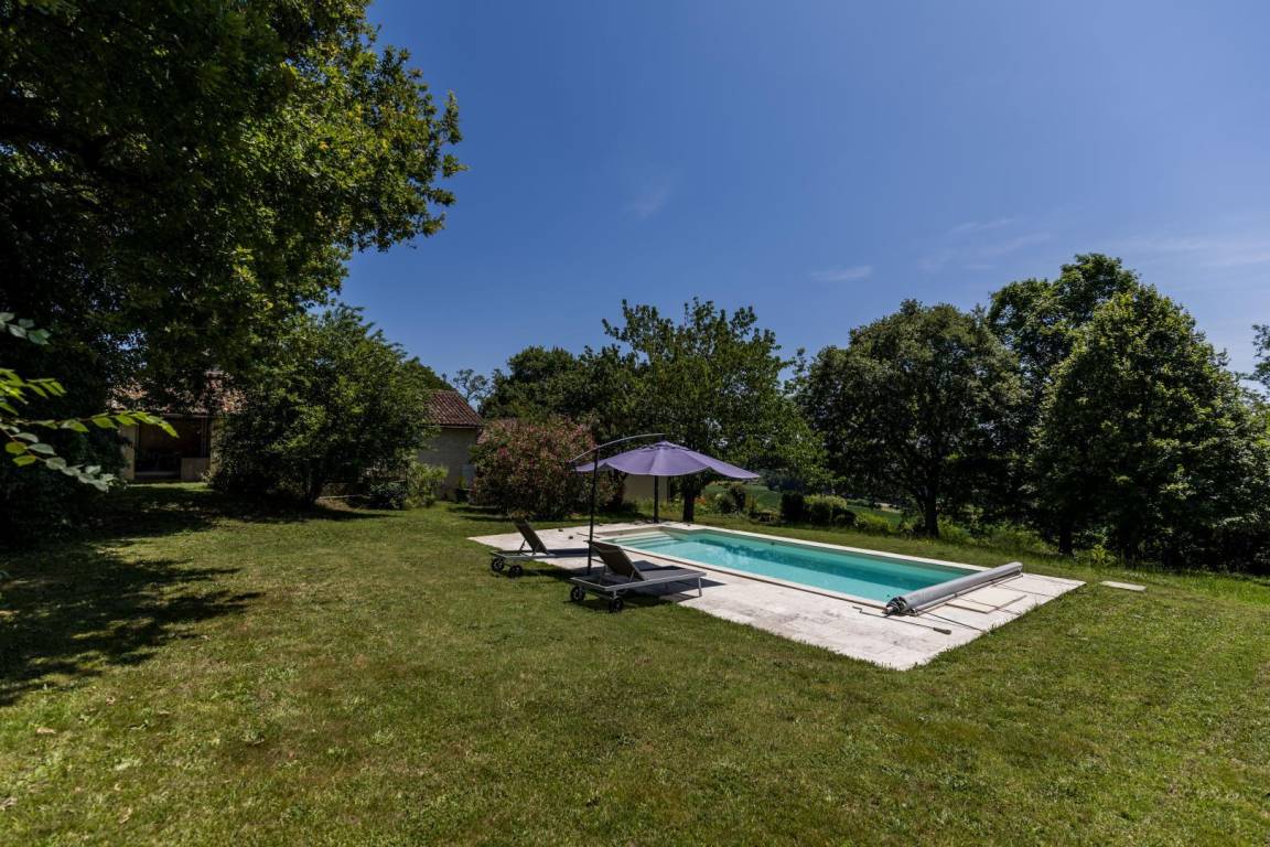 Von der Terrasse der Gîte des Granges blicken Sie auf den Swimmingpool, den Sie gemeinsam mit den Eigentümern nutzen und der Ihnen einen Wellness- und Entspannungsurlaub ermöglicht.