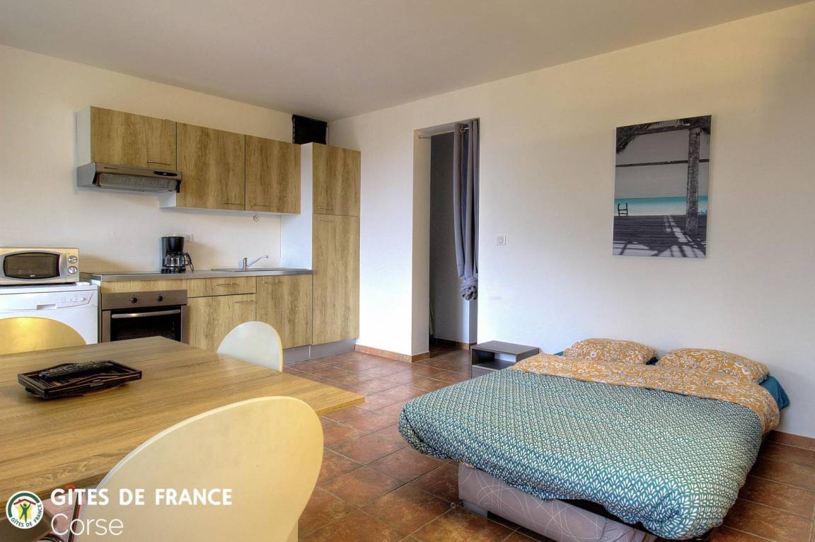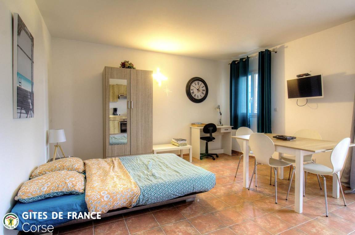 „Petit studio très accueillant avec superbe vue à la fois sur mer et montagne dans village typique corse“
