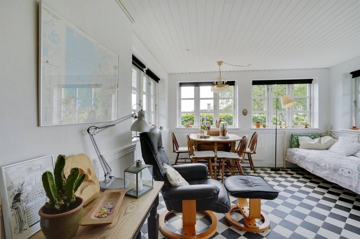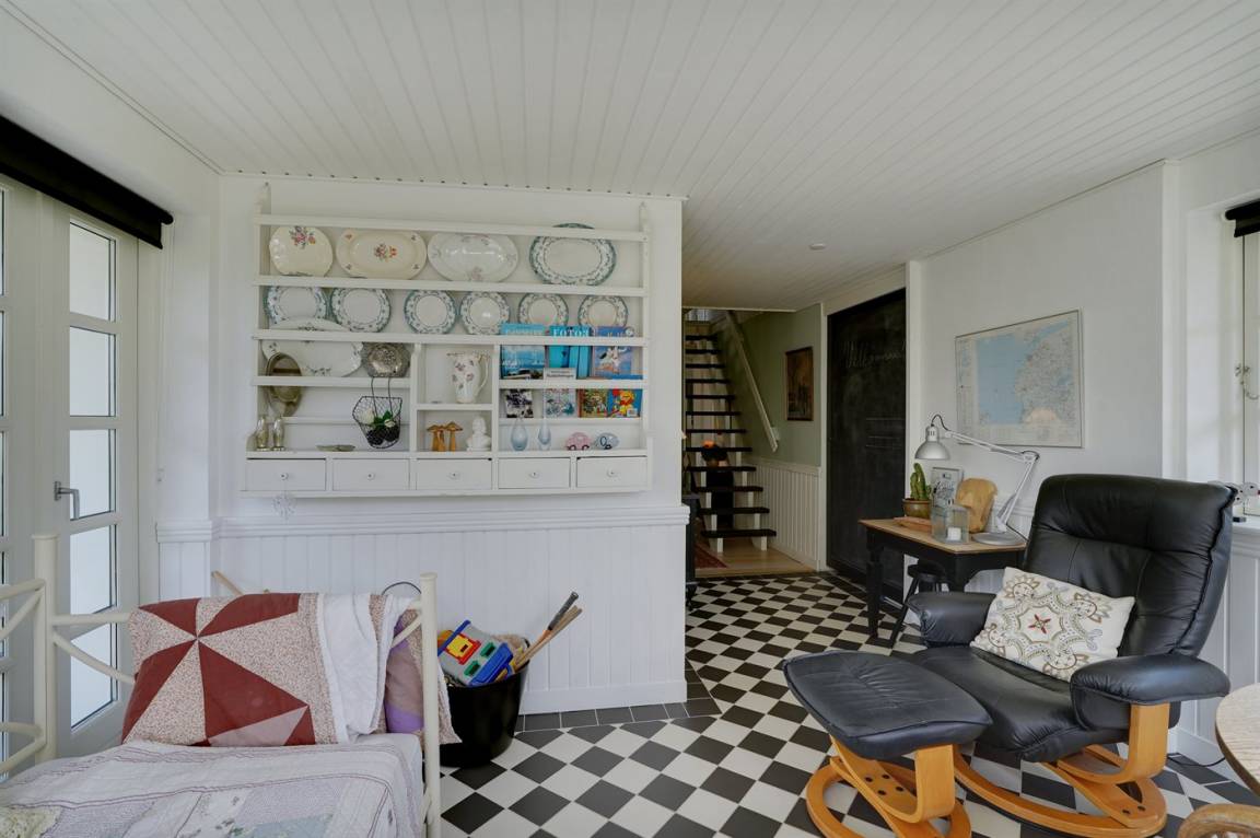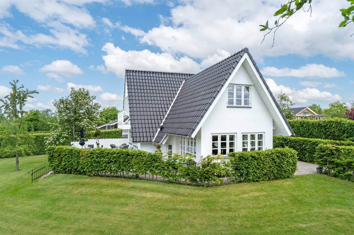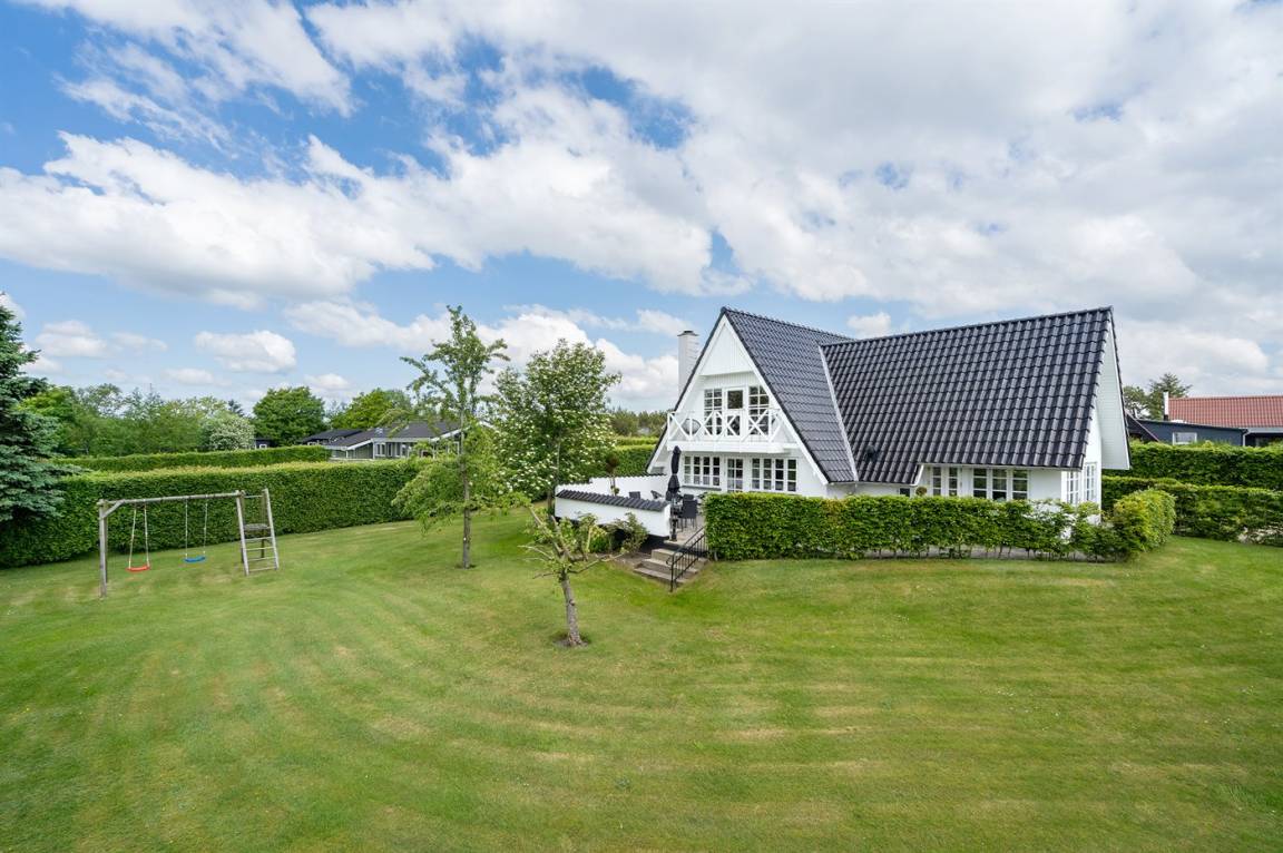 DraußenDie Ferienunterkunft liegt auf einem 1600 m² großen Gartengrundstück. Die Entfernung zum Fjord beträgt 500 m. Es gibt einen Badesteg in der Nähe. Die nächste Einkaufsmöglichkeit liegt 3000 m entfernt. In einem Abstand von 5000 m gibt es einen Golfplatz. Es steht ein 30 m² Terrassenareal zur Verfügung. Außerdem gibt es 20 m² überdachte Terrasse.Balkon im Obergeschoss. Schaukel. Fußballtor.Lagerfeuerstelle. Es steht ein Grill zur Verfügung. Parkplatz auf dem Grundstück.