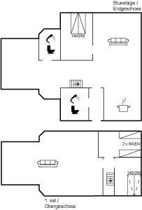 SchlafverhältnisseDie Schlafplätze verteilen sich auf 3 Schlafräume. 2 Schlafplätze in einem Doppelbett. 2 Schlafplätze in Einzelbetten. 2 Schlafplätze auf einer Doppelschlafcouch. Ferner steht ein Kinderbett zur Verfügung.
