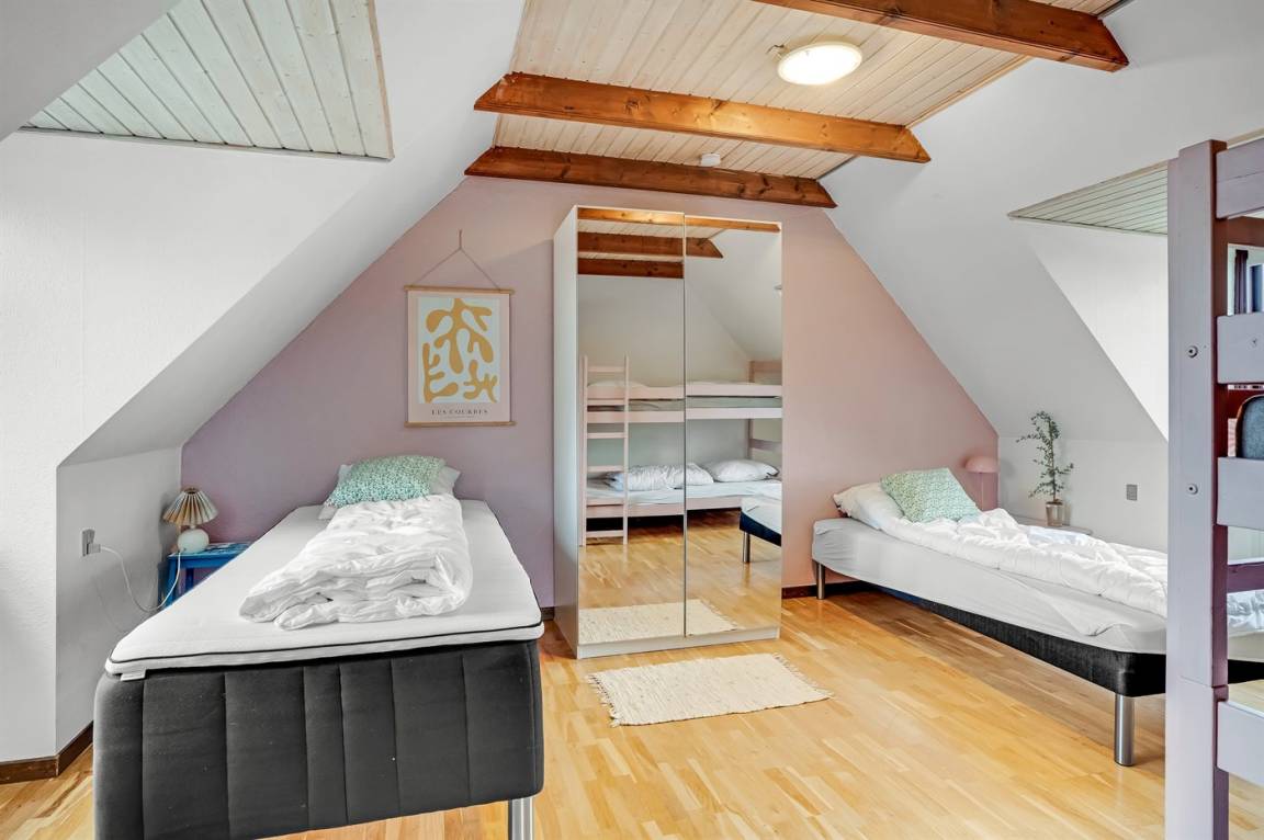 DraußenDie Ferienunterkunft liegt auf einem 1655 m² großen Gartengrundstück. Das Grundstück ist eingezäunt. Die Entfernung zum Meer beträgt 25000 m. Die Entfernung zum Fjord beträgt 200 m.Die Entfernung zum Wattenmeer beträgt 25000 m. Die Entfernung zu einem See beträgt 200 m. Die nächste Einkaufsmöglichkeit liegt 8000 m entfernt. In einem Abstand von 11900 m gibt es einen Golfplatz. Es steht ein offenes Terrassenareal zur Verfügung. Außerdem gibt es überdachte Terrasse.Balkon im Obergeschoss. Schaukel. Sandkasten. Rutsche.Lagerfeuerstelle. Es steht ein Grill zur Verfügung. Parkplatz auf dem Grundstück.