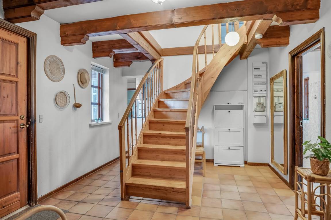 Das Ferienhaus eignet sich für 14 Personen. Die Ferienunterkunft hat eine Wohnfläche von 253 m², ist 2-stöckig, und wurde 1954 gebaut. 2006 wurde die Ferienunterkunft renoviert. Es ist erlaubt 2 Haustiere mitzubringen. Die Ferienunterkunft ist mit einer energiefreundlichen Luft-Wasser-Wärmepumpe ausgestattet. Fußbodenheizung im Flur. Die Ferienunterkunft ist mit Waschmaschine ausgestattet. Wäschetrockner. Tiefkühlmöglichkeit mit 100 Liter Nutzinhalt.Es gibt außerdem einen Kamin. Für die jüngsten Feriengäste sind 3 Kinderhochstühle vorhanden.