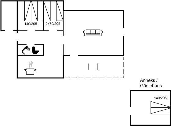 SchlafverhältnisseDie Schlafplätze verteilen sich auf 3 Schlafräume. 4 Schlafplätze in Doppelbetten. 2 Schlafplätze in Einzelbetten. 2 von diesen Schlafplätzen befinden sich im Gästehaus. Ferner steht ein Kinderbett zur Verfügung.