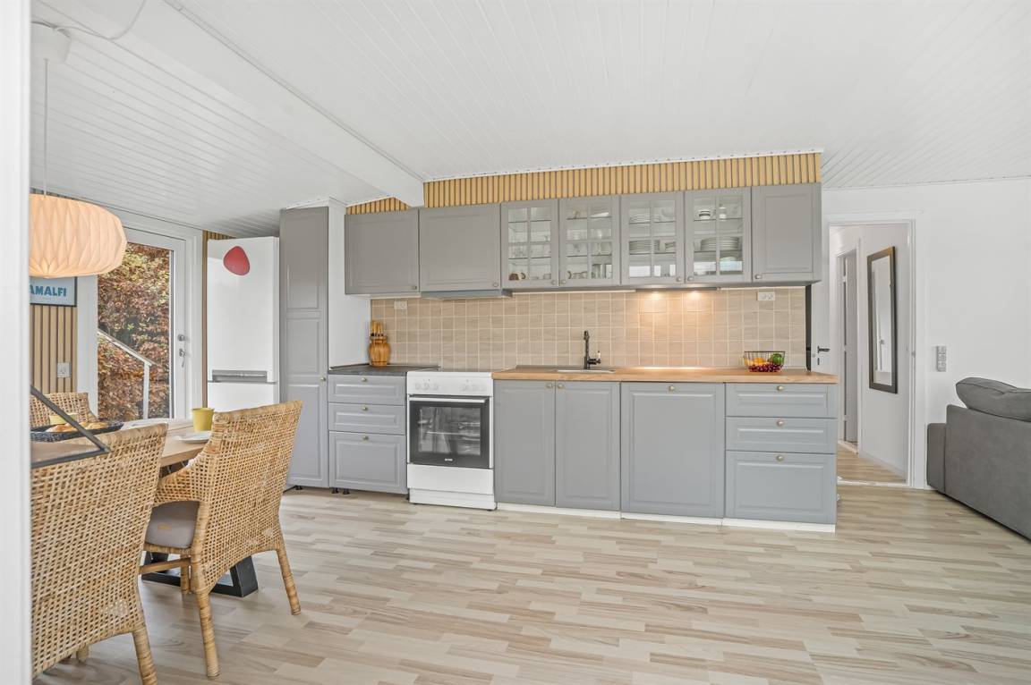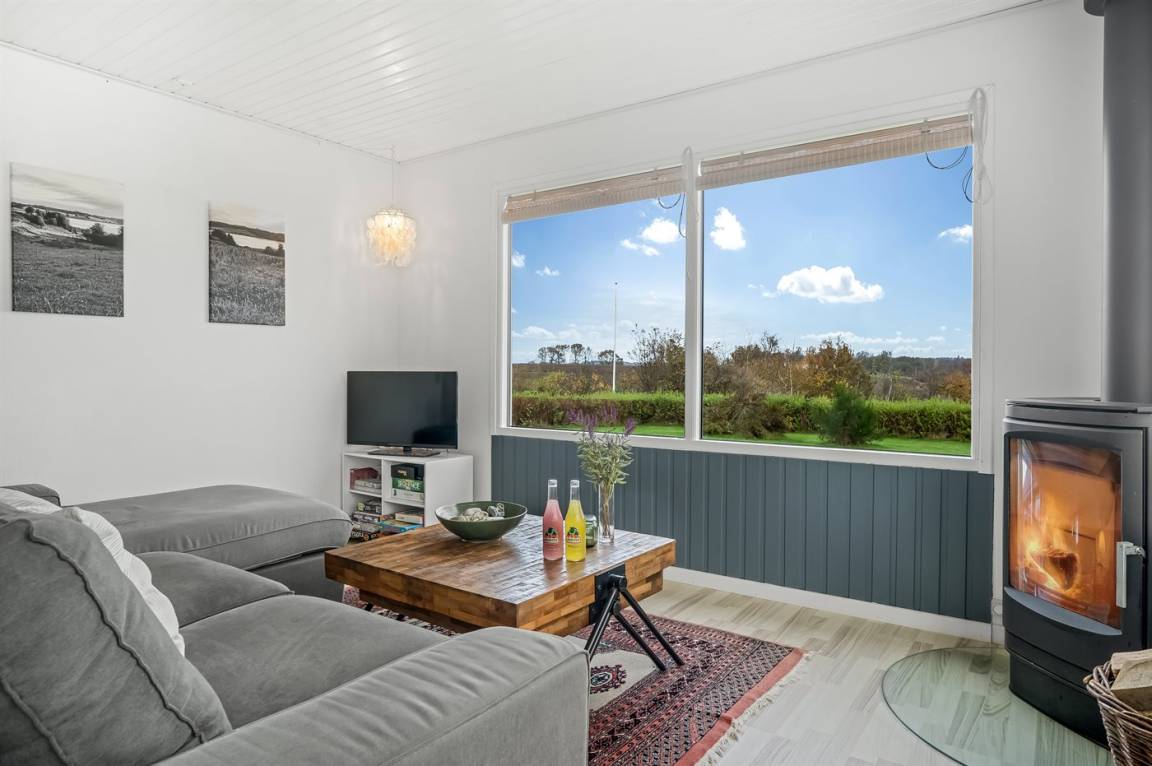 DraußenDie Ferienunterkunft liegt auf einem 1514 m² großen Naturgrundstück. Das Grundstück ist eingezäunt. Die Entfernung zum Fjord beträgt 250 m. Die nächste Einkaufsmöglichkeit liegt 3900 m entfernt. In einem Abstand von 4000 m gibt es einen Golfplatz. Es steht ein offenes Terrassenareal zur Verfügung. Es steht ein Grill zur Verfügung. Parkplatz auf dem Grundstück.