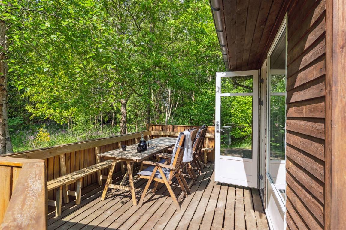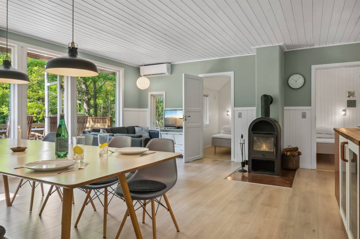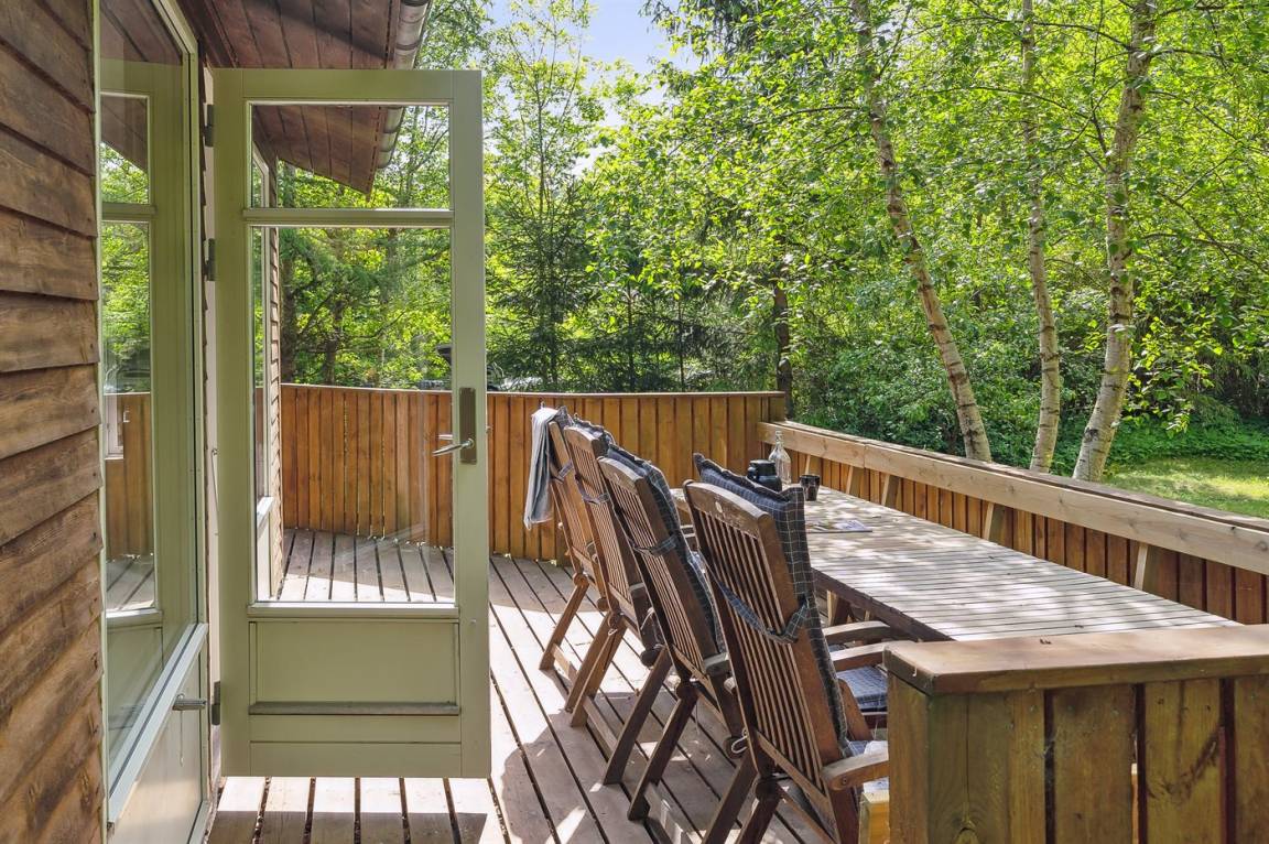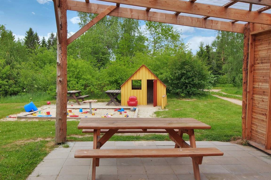 Das Sommerhaus liegt völlig ungestört auf dem 1300 m² großen Grundstück und verfügt über einen schönen Terrassenbereich, sodass die Ruhe und die schöne Umgebung zu genießen sind. Das Sommerhaus ist gut eingerichtet und verfügt über eine große Wohnküche und drei gute Schlafzimmer sowie ein Gästehaus, das für ältere Kinder oder Großeltern geeignet ist. Hier bietet sich also eine wirklich gute Gelegenheit für zwei Familien, gemeinsam einen Urlaub zu verbringen. Den Urlaubsgästen dieses Hauses steht der örtliche Outdoor-Pool samt zugehörigem Kinderbecken kostenlos zur Verfügung. Der Pool liegt ca. 250 m weit vom Haus entfernt und ist von Mitte Mai bis zum letzten Augustwochenende geöffnet.