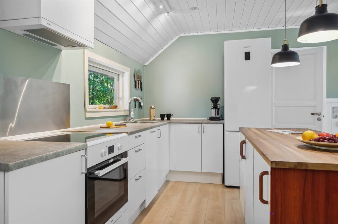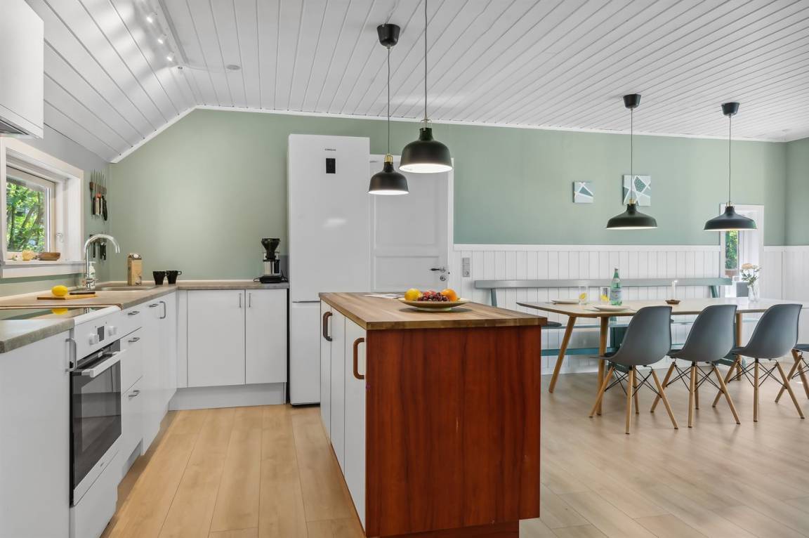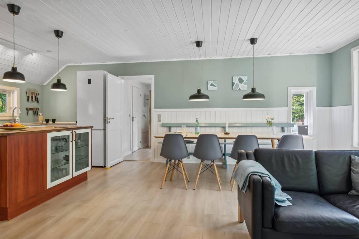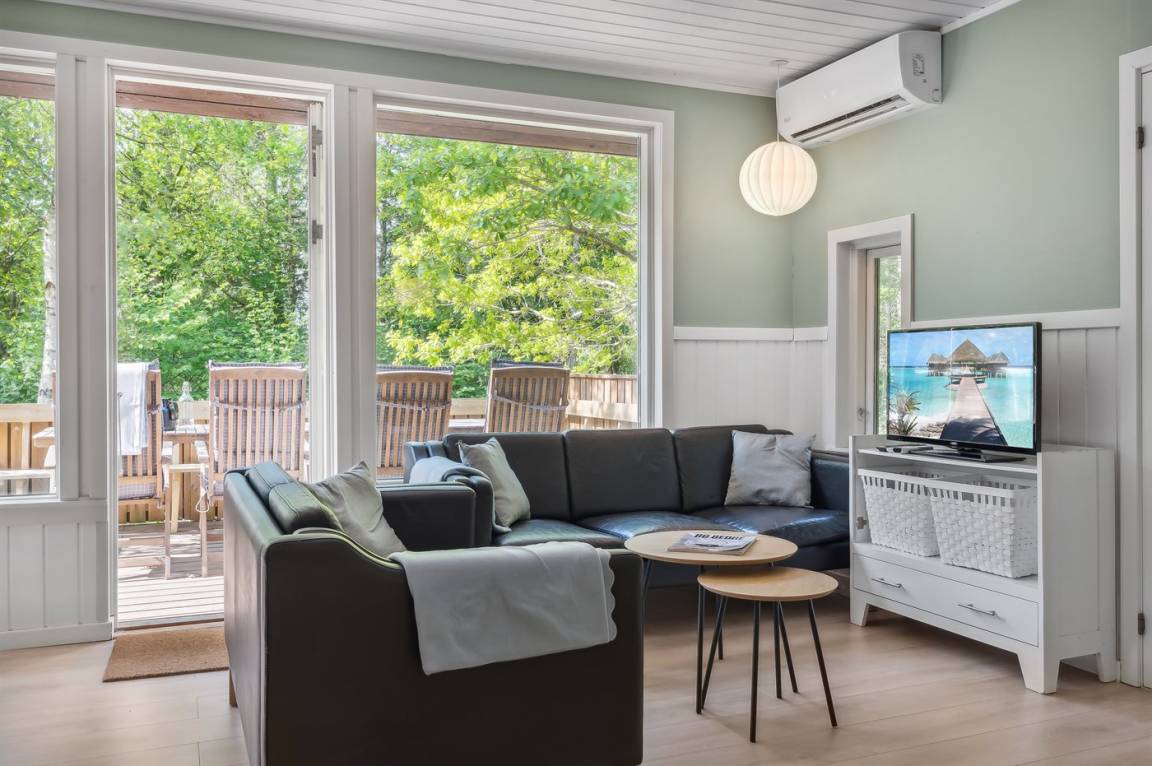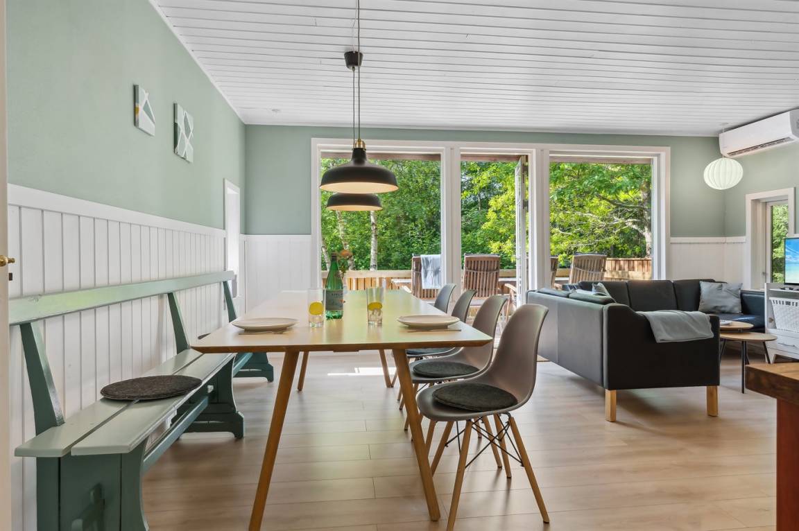 Das Sommerhaus liegt völlig ungestört auf dem 1300 m² großen Grundstück und verfügt über einen schönen Terrassenbereich, sodass die Ruhe und die schöne Umgebung zu genießen sind. Das Sommerhaus ist gut eingerichtet und verfügt über eine große Wohnküche und drei gute Schlafzimmer sowie ein Gästehaus, das für ältere Kinder oder Großeltern geeignet ist. Hier bietet sich also eine wirklich gute Gelegenheit für zwei Familien, gemeinsam einen Urlaub zu verbringen. Den Urlaubsgästen dieses Hauses steht der örtliche Outdoor-Pool samt zugehörigem Kinderbecken kostenlos zur Verfügung. Der Pool liegt ca. 250 m weit vom Haus entfernt und ist von Mitte Mai bis zum letzten Augustwochenende geöffnet.