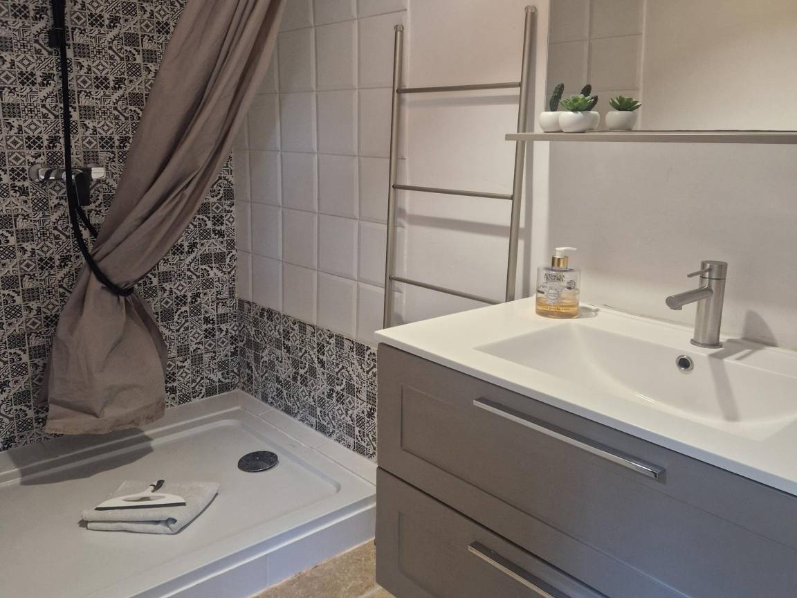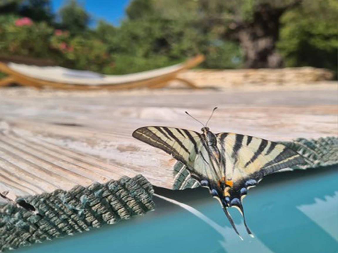 Dusche(im Garten), Terrasse(alleinige Nutzung, 60 m²), Garten(Gemeinschaftliche Nutzung mit dem Eigentümer und anderen Gästen , angelegt, illuminiert, umzäunt, 3000 m²), Gartenmöbel, Liegen, 1x Parkplatz, Parasol, Pool(Gemeinschaftliche Nutzung mit anderen Gästen, im Garten, erwärmt, Wasseralarm, 8 x 4 m., Tiefe: 1.4m, geöffnet von Mitte Apr bis einschließlich Mitte Okt), Hängematte, Gartenlounge, Plancha