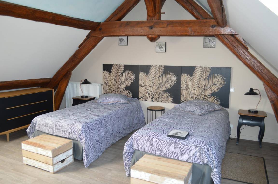 Dritter Stock: Großes Schlafzimmer (20 m²) mit zwei Einzelbetten (90 x 200 cm) und Waschbecken. Auf Anfrage kann in einem der Schlafzimmer ein Doppelbett (180 x 200 cm) gebildet werden.