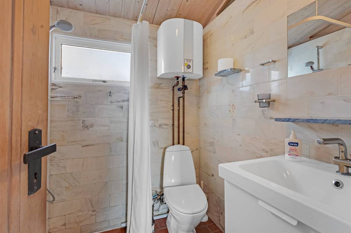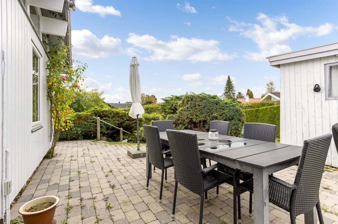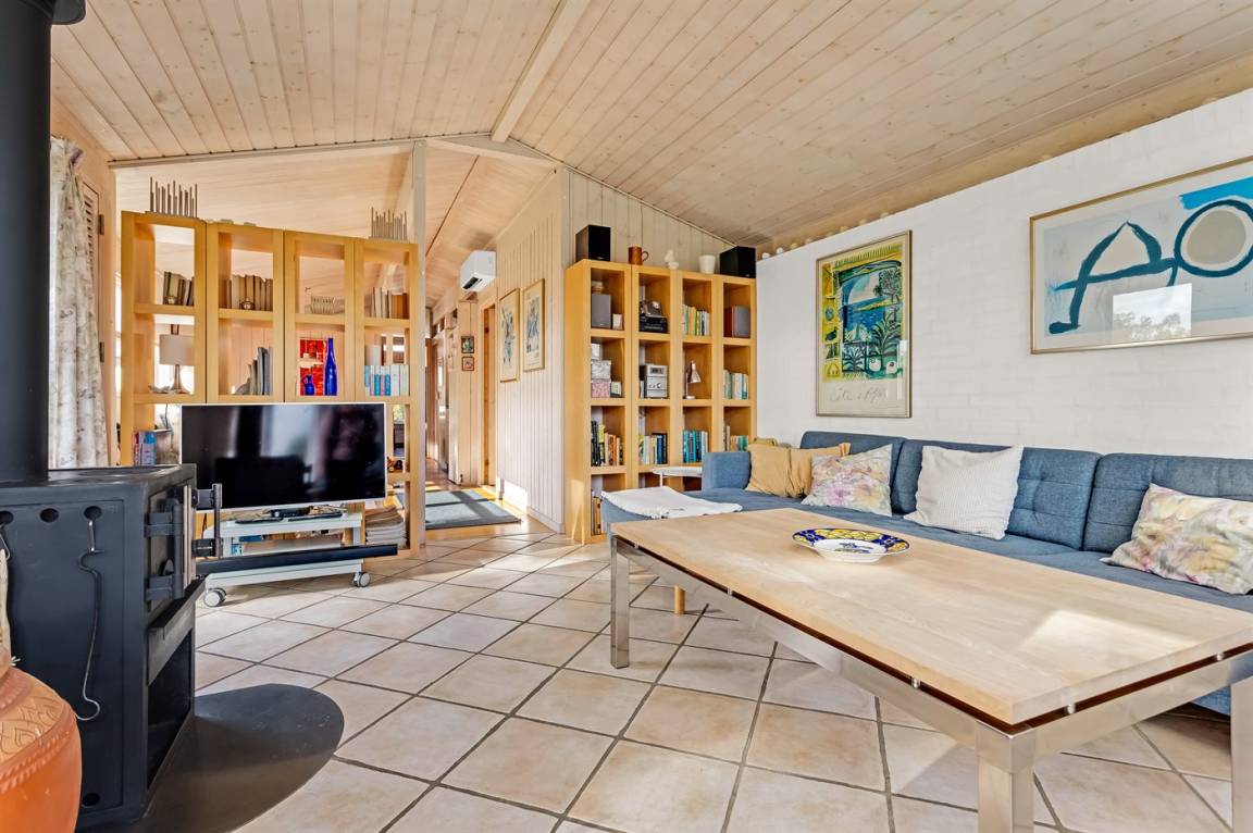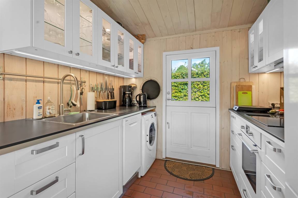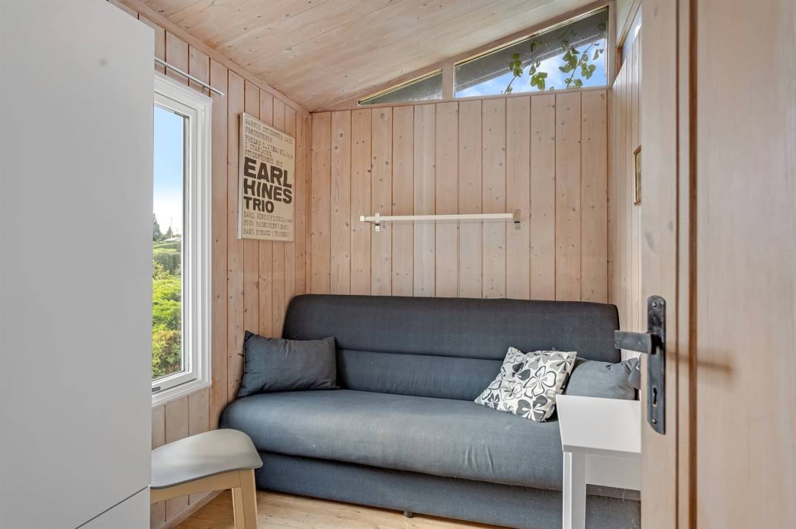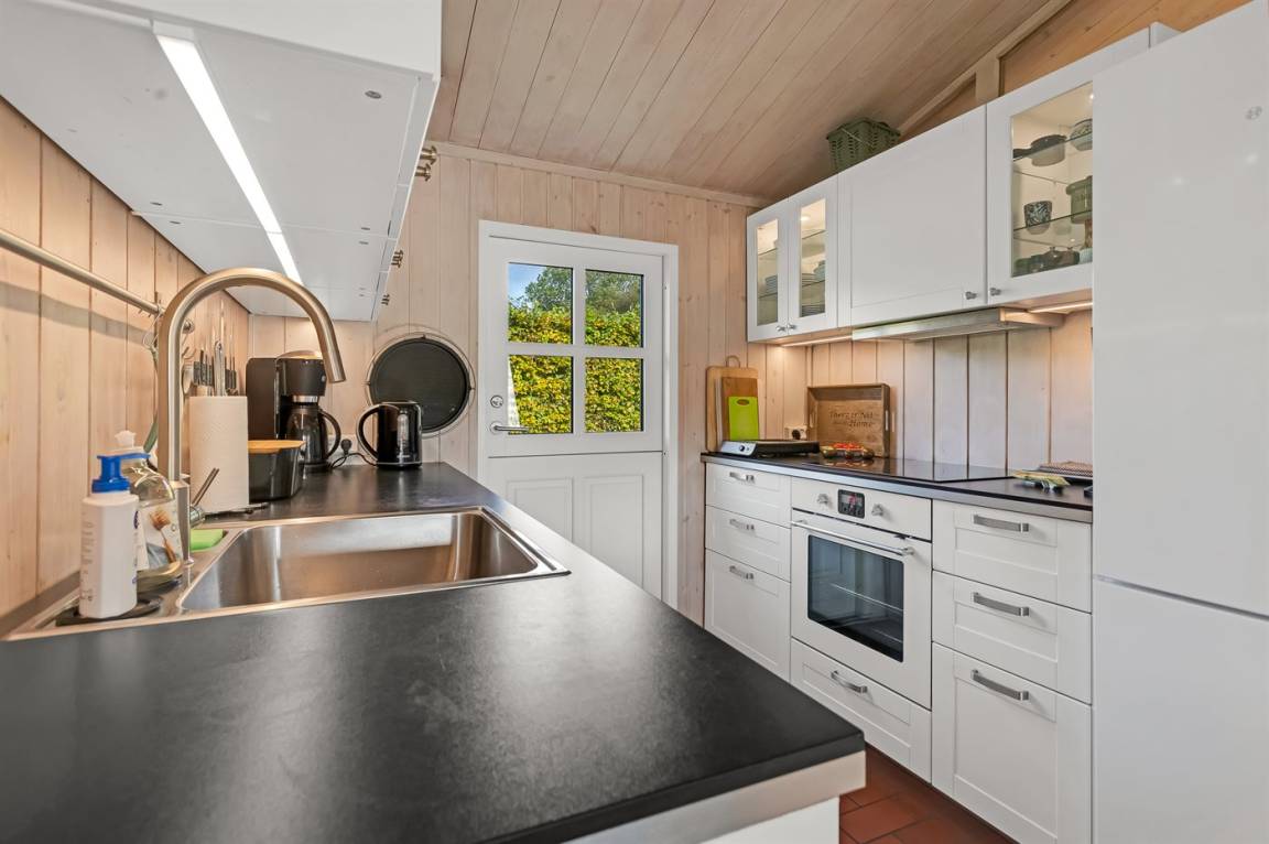 DraußenDie Ferienunterkunft liegt auf einem 839 m² großen Naturgrundstück. Die Entfernung zum Fjord beträgt 100 m. Es gibt einen Badesteg in der Nähe. Die nächste Einkaufsmöglichkeit liegt 6000 m entfernt. Es steht ein offenes Terrassenareal zur Verfügung. Es steht ein Grill zur Verfügung. Parkplatz auf dem Grundstück.