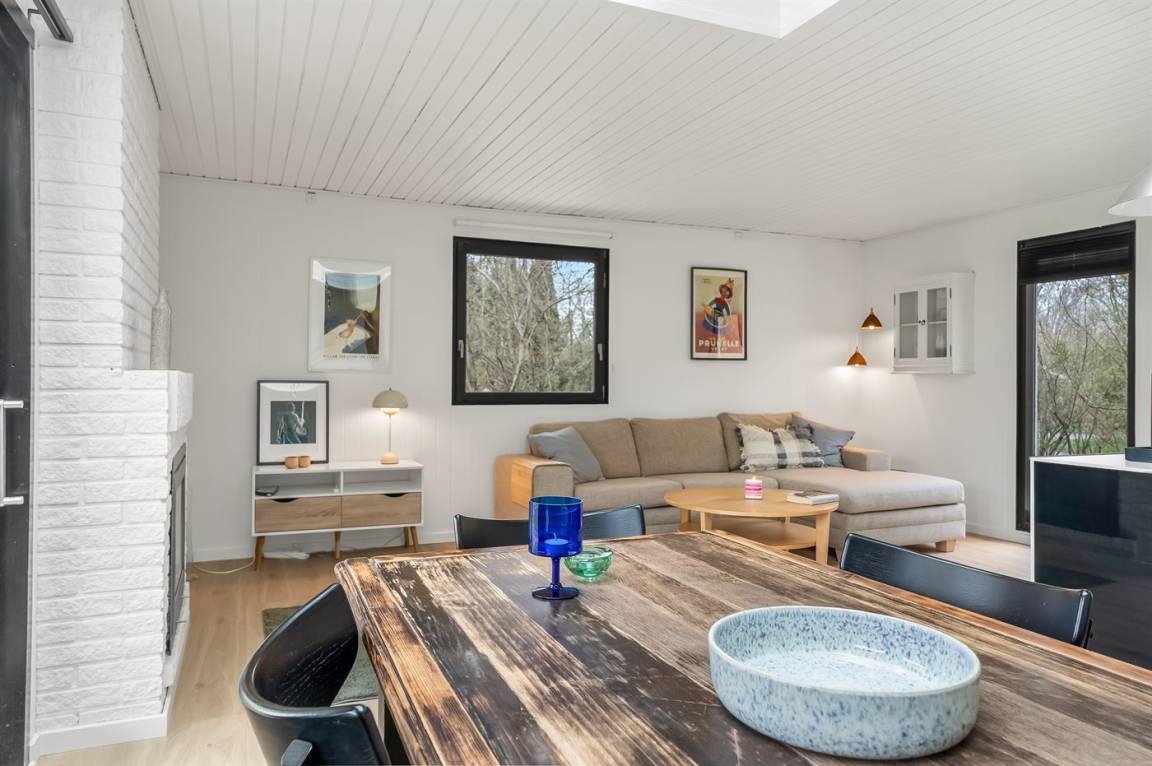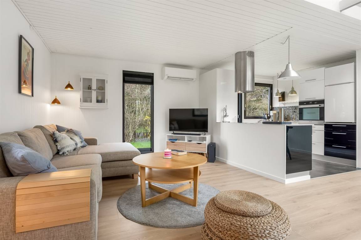In einem netten Ferienhausgebiet in einer ruhigen Stichstraße findet ihr dieses schöne und gepflegte Ferienhaus. Das Haus verfügt über ein Badezimmer, eine schöne offene Küche und ein gemütliches Wohnzimmer mit Kaminofen. Außerdem gibt es drei gute Schlafzimmer.
