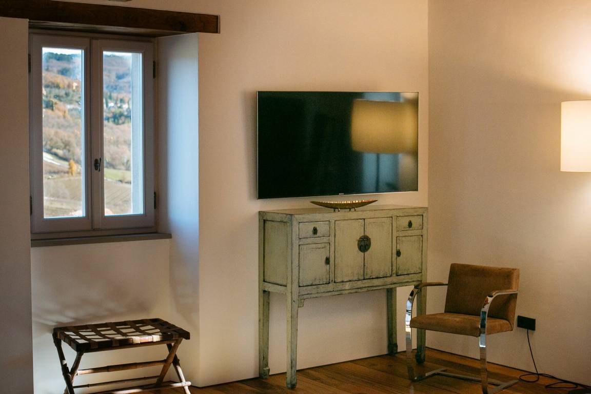 Schlafzimmer mit Bad 2: Doppelbett, WiFi Internet, Klimaanlage, TV, Sessel, Waschbecken, WC, Bidet, Dusche.