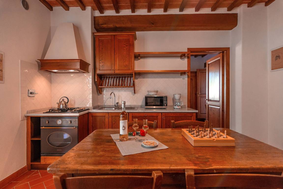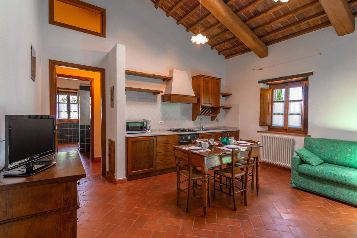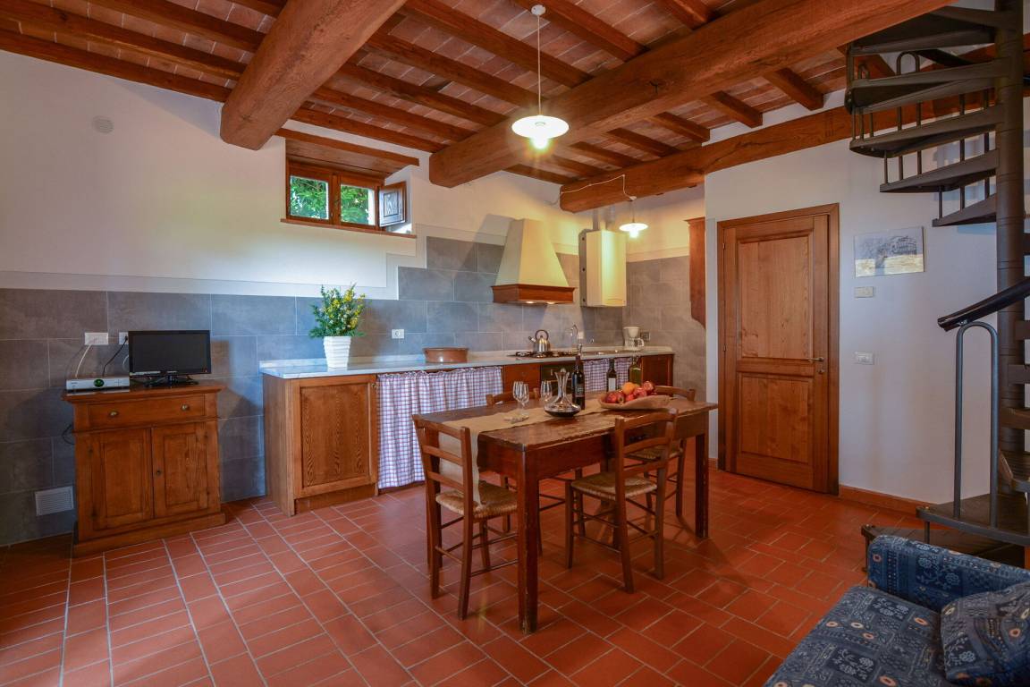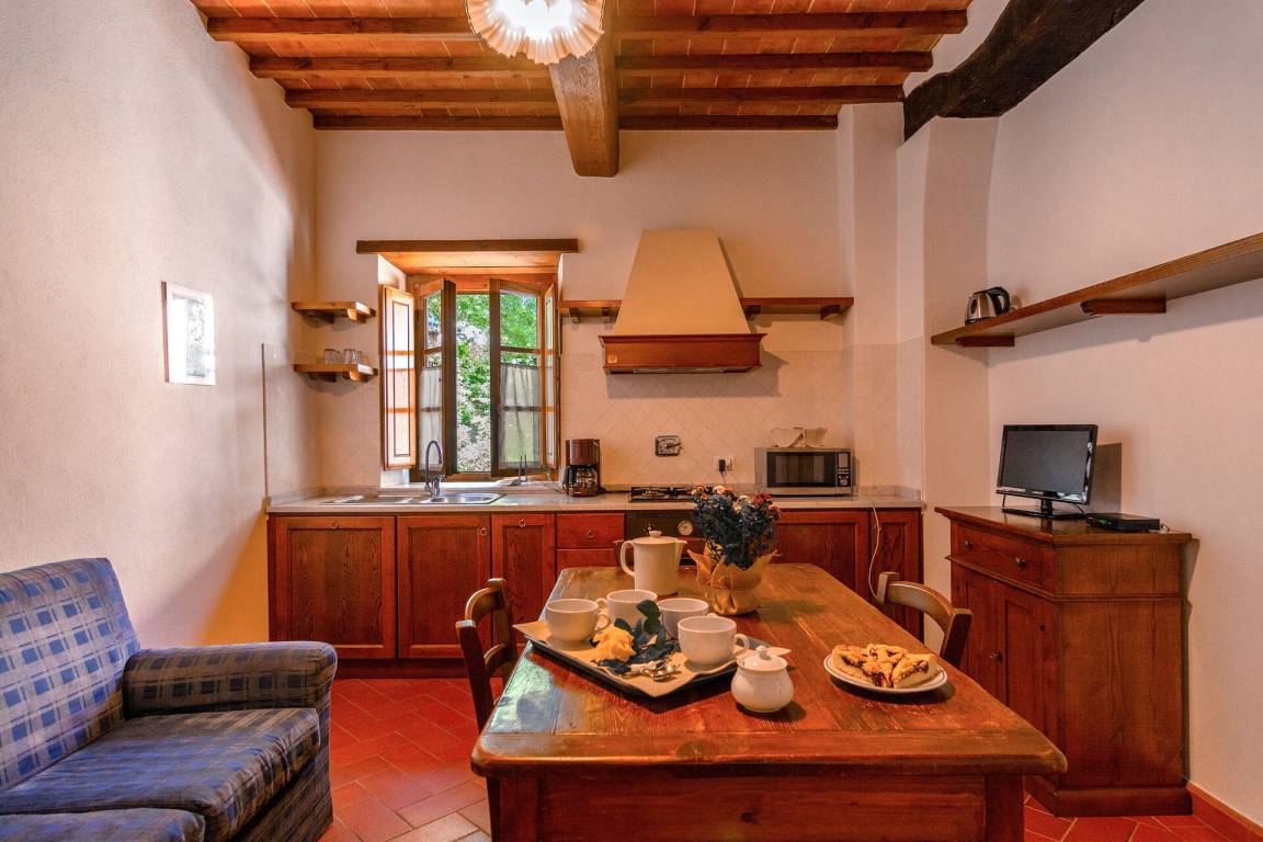 Annex:auf zwei Etagen mit Küche und Wohnzimmer (Esstisch, Herd, Kühlschrank, Gefrierschrank), einem kleinen Bad mit Waschbecken, WC und Dusche im EG; im 1. Stock ist ein Schlafzimmer mit Doppelbett, ein Schlafzimmer mit einem Einzelbett und ein Bad mit Waschbecken, Bidet, kleine Dusche, WC. Der Zugang zum Annex ist sowohl aus dem Erdgeschoss als auch aus dem 1. Stock möglich.