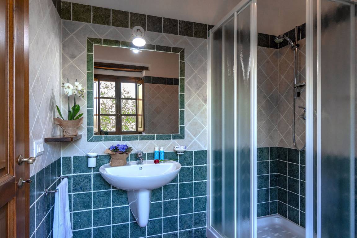 Schlafzimmer mit Bad 3: Doppelbett, WiFi Internet, WiFi Internet, tragbarer Ventilator, Waschbecken, WC, Bidet, Dusche.