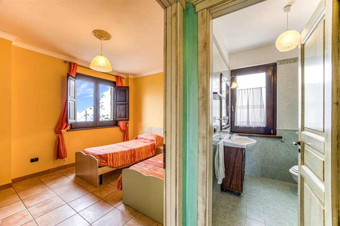 The ca. 100 m² sea view terrace is without doubt the centerpiece of Casa Pietralata. It opens upon a fantastic and uninhibited view of the Cape of Palinuro about 13 km off. The terrace is furnished (table, chairs, loungers, grill), partly shaded by a fabric panel roofing and can be secured by a lockable gate at the top of the outdoor staircase.