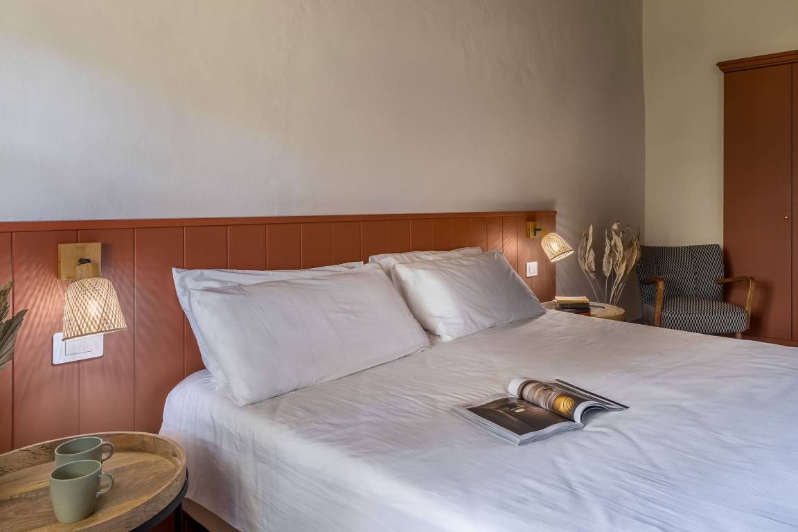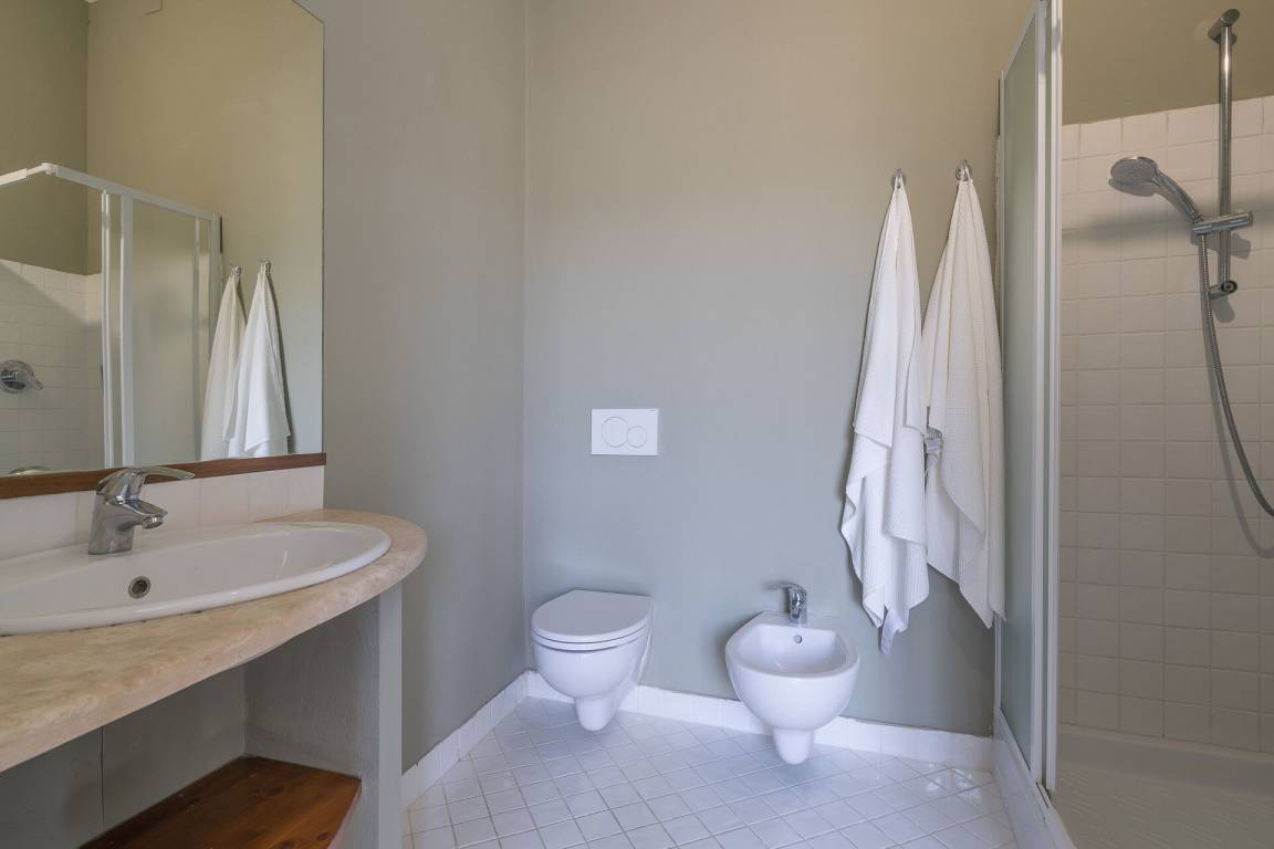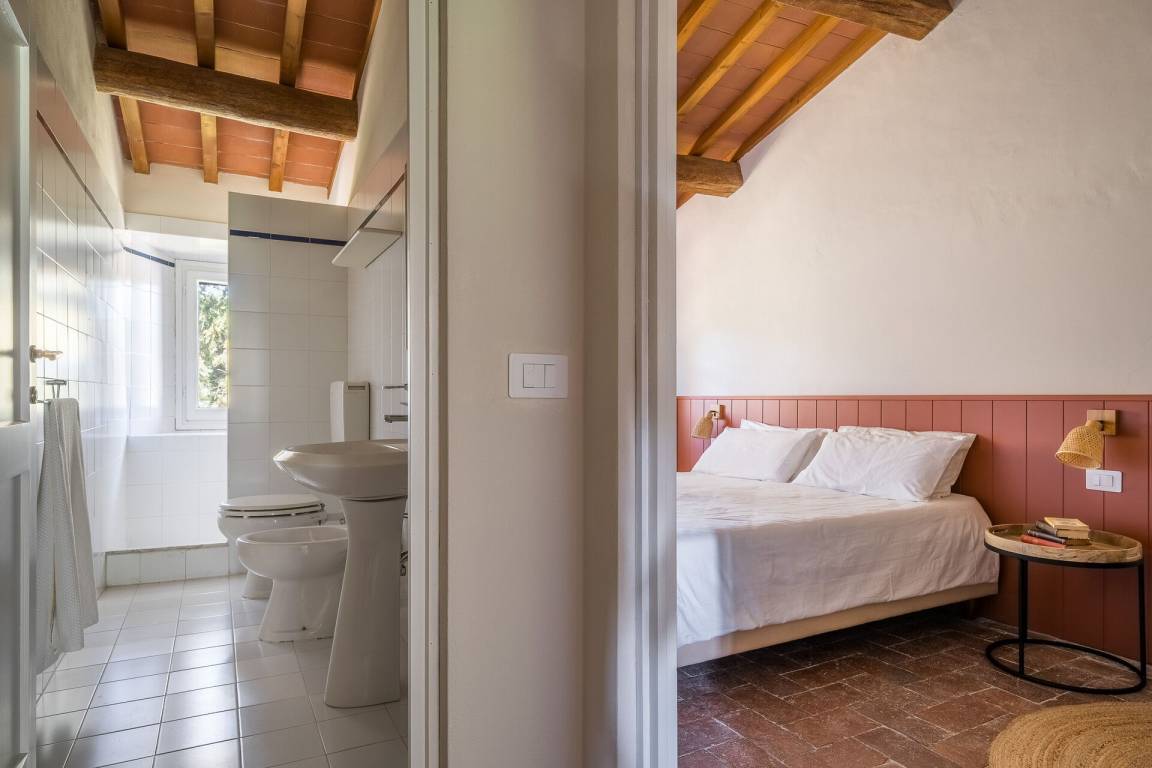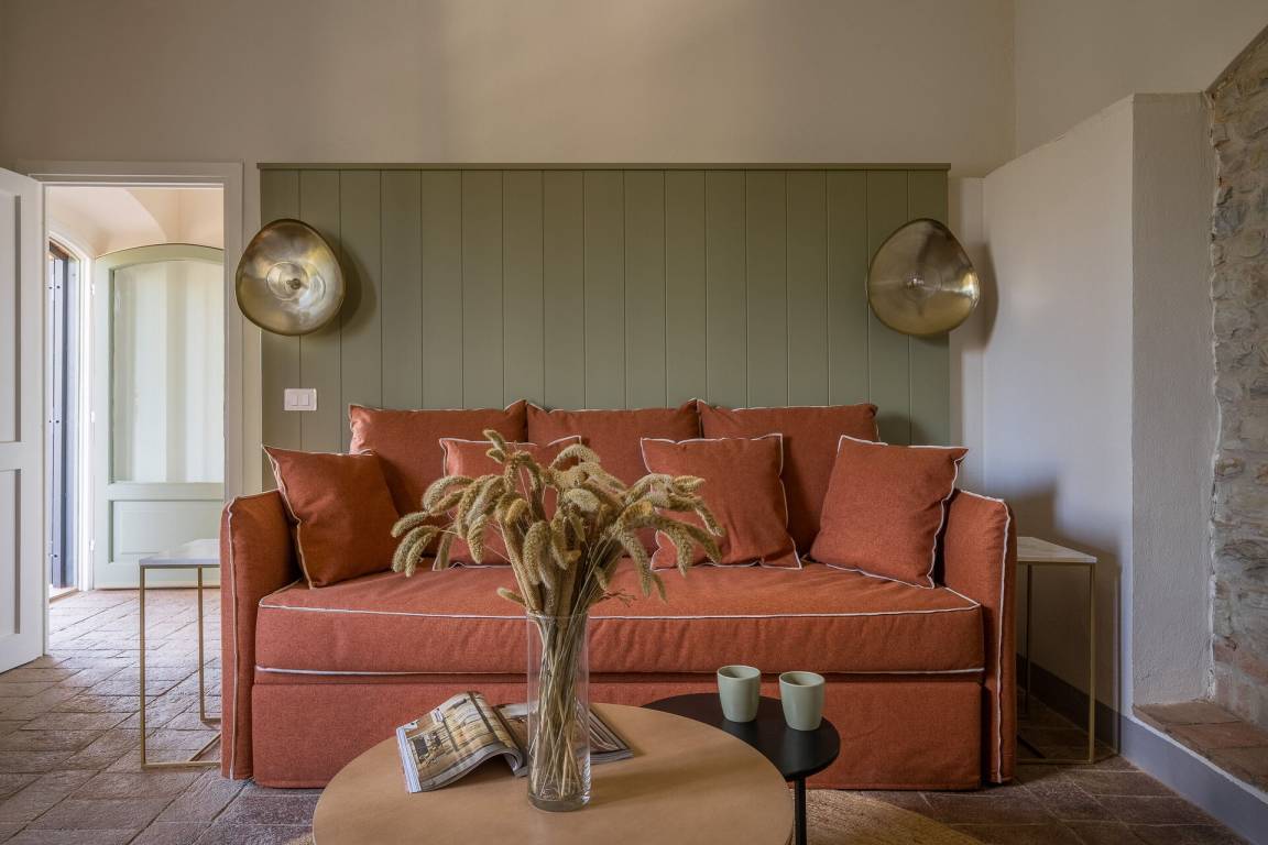 Relais Badia a Passignano - Appartamento Syrah (51 m²) ist eine zwei-Zimmer Wohneinheit, die auf eins Stockwerk gebaut ist, mit zwei Badezimmern. Hier können bis zu vier Leute schlafen.