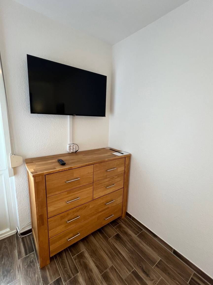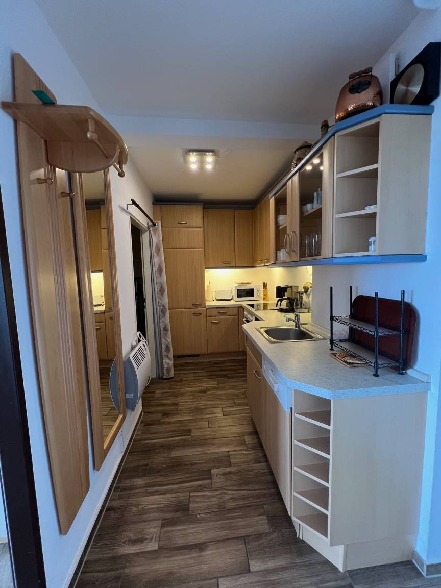 Die Wohnung ist für bis zu 5 Personen geeignet. Ihnen steht eine Doppelschlafcouch, ein Doppelbett und ein Einzelschrankklappbett zur Verfügung. Es ist ein Duschbad und eine separate vollständige Küche vorhanden. Vom Balkon haben Sie einen sehr schönen Ausblick direkt auf das Meer.