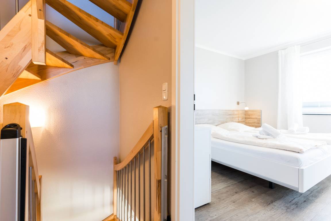 Ob Urlaub als Großfamilie oder mit Freunden – unsere 120m² großen Reihenhäuser bieten auf 3 Etagen Wohnfläche Raum für Erholung und gemeinsame Stunden. Mit 4 Schlafzimmern und 2 vollwertigen Duschbädern finden Sie Rückzugsmöglichkeiten für bis zu acht Personen. Sauna und Kamin sorgen für Entspannung und Gemütlichkeit.