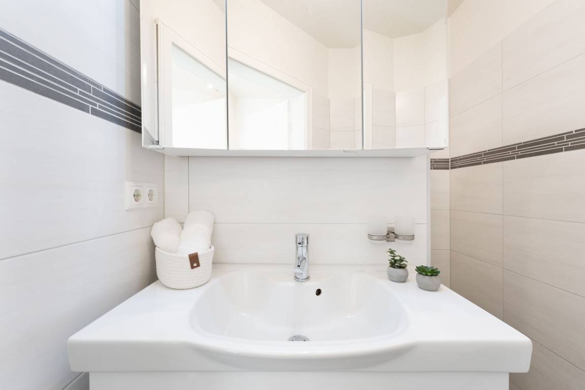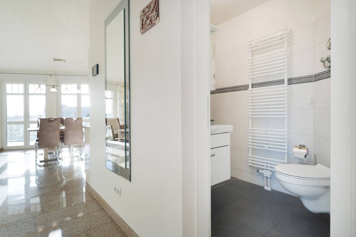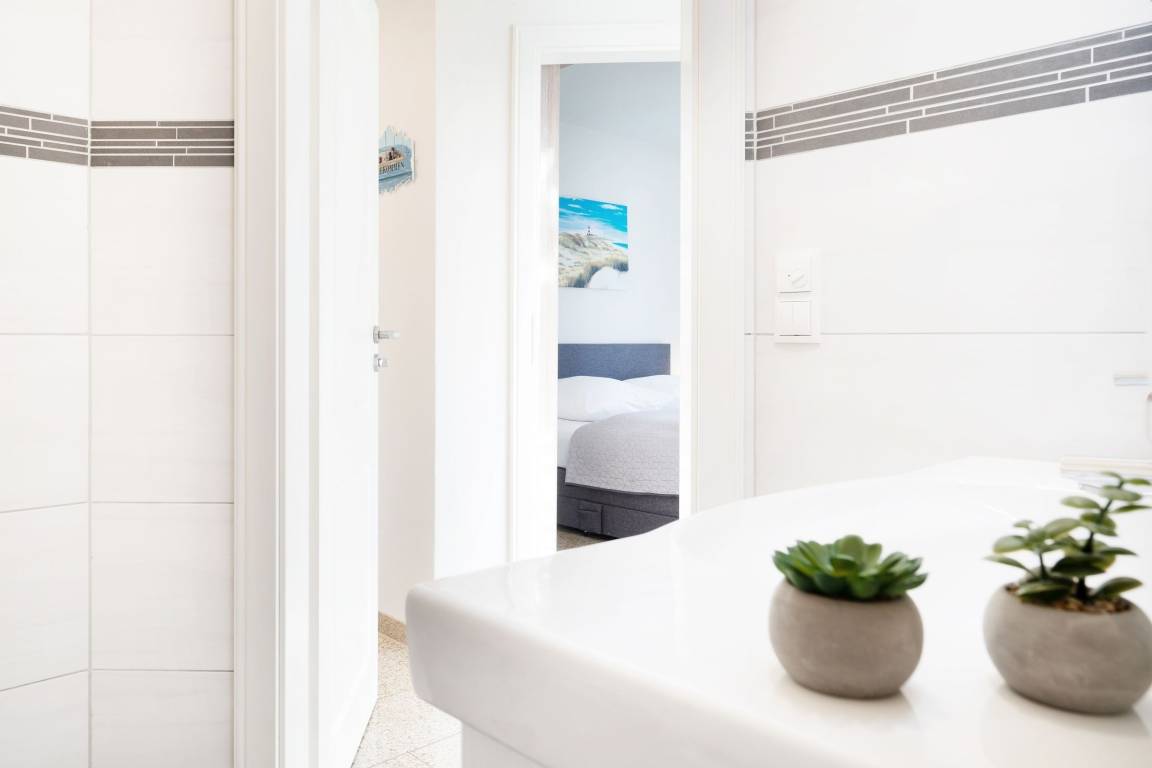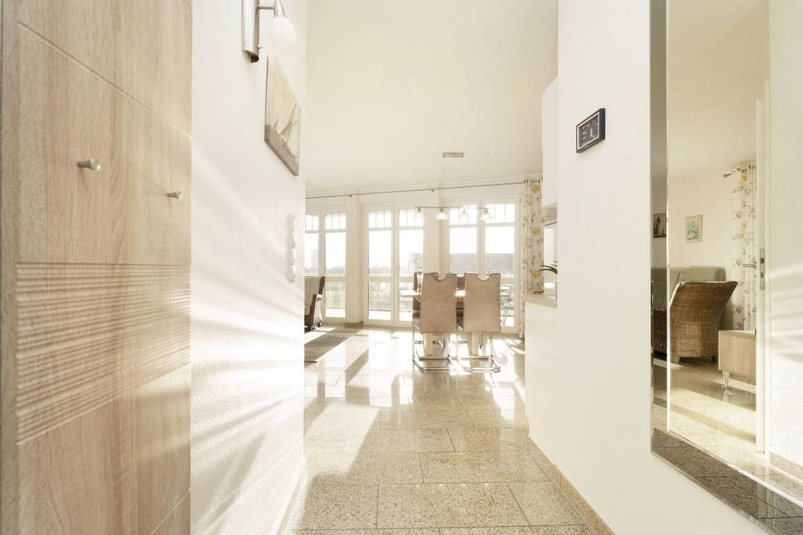 Der Wohn- und Essbereich mit angrenzender Küche ist hell und freundlich eingerichtet. Die Abende können Sie auf dem gemütlichen Sofa oder Sessel ausklingen lassen. Die moderne Küche verfügt zum Beispiel über ein Induktionskochfeld, einen Backofen auf Körperhöhe, einen Geschirrspüler und eine Kaffeemaschine. Das Hauptschlafzimmer ist mit einem komfortablen Boxspringbett (180x200 cm) ausgestattet, das kleinere Schlafzimmer mit einem modernen Einzelbett (100x200 cm) mit ausziehbarem, weiteren Schlafplatz. Fernseher sind jeweils im Wohnzimmer, Kinderzimmer und im Schlafzimmer vorhanden. Das Badezimmer überzeugt mit einem hochwertigen Waschtisch und einer Eckdusche. Die komplette Wohnung ist mit Fußbodenheizung ausgestattet. Der 15 m² große Balkon mit Blick zum Burger Binnensee rundet den perfekten Urlaubstag ab.