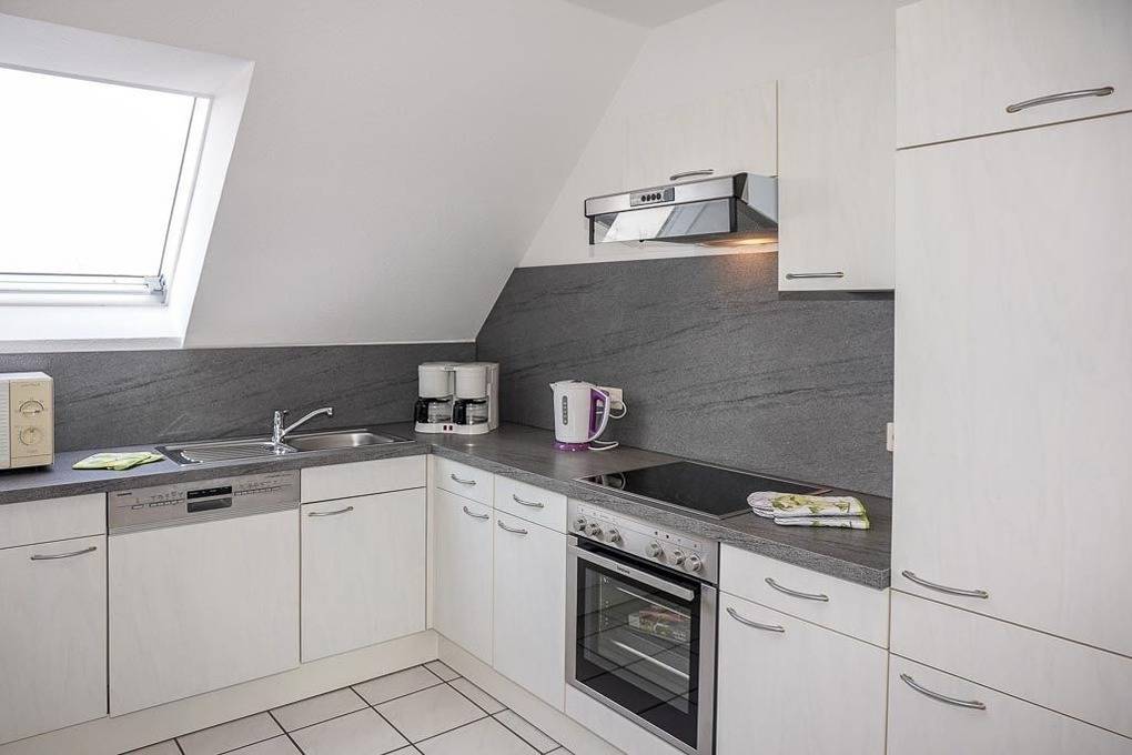Die separate moderne Küche ist komplett ausgestattet u.a. mit Spülmaschine, Mikrowelle, E-Herd mit Ceranfeld und Backofen, Kühlschrank mit Gefrierfach und alle weiteren E-Geräte.