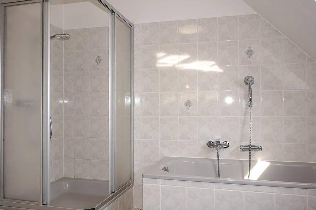 Im großen Badezimmer gibt es eine Badewanne und eine Duschwanne.