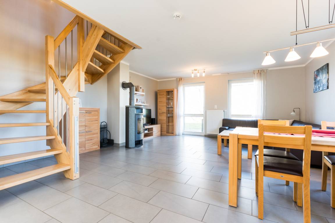 Familienurlaub oder Urlaub mit Freunden– auf 80m² genießen Sie die gehobene Ausstattung auf zwei Etagen mit Sauna, Kaminofen und Terrasse.