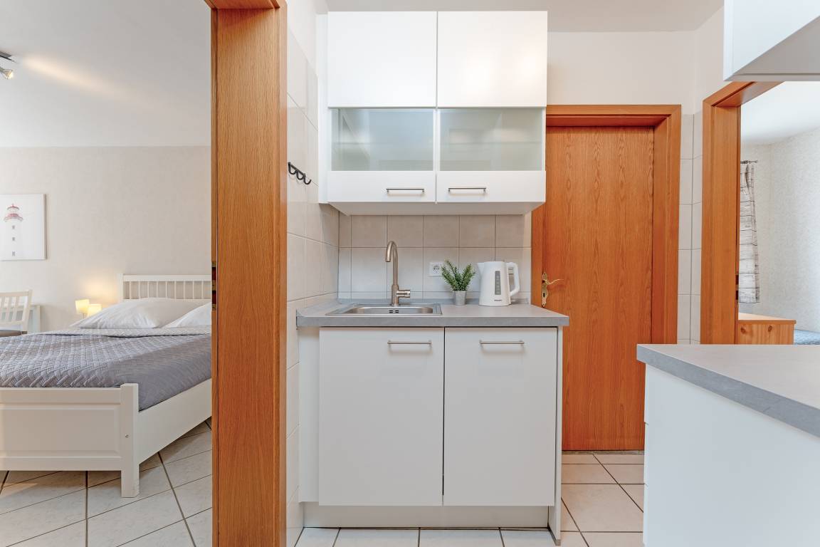 „Wohnung top. Sauber, Kleinküche reicht für den Urlaub, Geräte neuwertig. Jederzeit weiter zu empfehlen. Preis Leistung passt.“