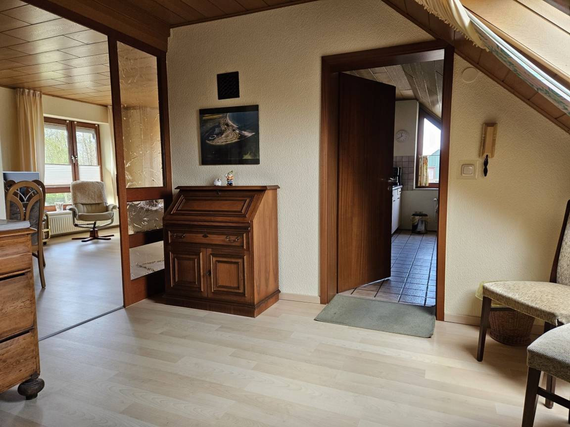 Die Ferienwohnung befindet sich im Obergeschoss eines repräsentativen Zweifamilienhauses, der Gastgeber bewohnt selbst die Wohnung im Erdgeschoß.
