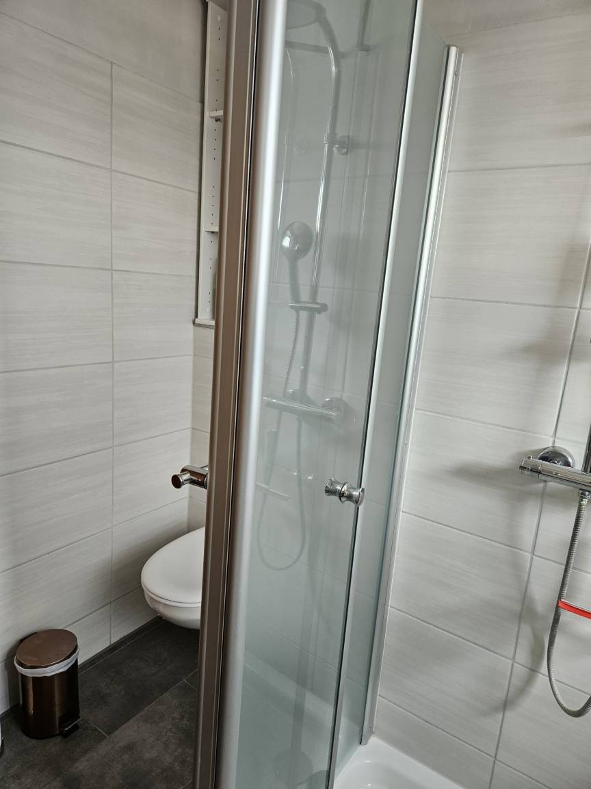Das Bad ist ausgestattet mit einer Dusche.