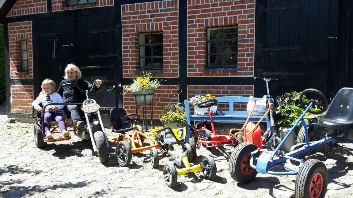 Es gibt viele Ruheplätze und mehrere Terrassen mit Gartenmöbeln und Sonnenliegen im Garten, eine Spiel-und Liegewiese mit Trampolin, eine Gartenhütte mit Grillecke, eine Spiel- und Tierscheune. Weiter stehen Tischtennis, Tischkicker, Billard und die beliebten Ketcars zur Verfügung. Außer uns wohnen auf dem Hof noch viele Tiere. Unter anderem freuen sich das Pony, Schaf Polly, Ziege Levi, Kaninchen und Katzen auf Besuch und natürlich Streicheleinheiten, Tierpatenschaften sind nach Absprache möglich