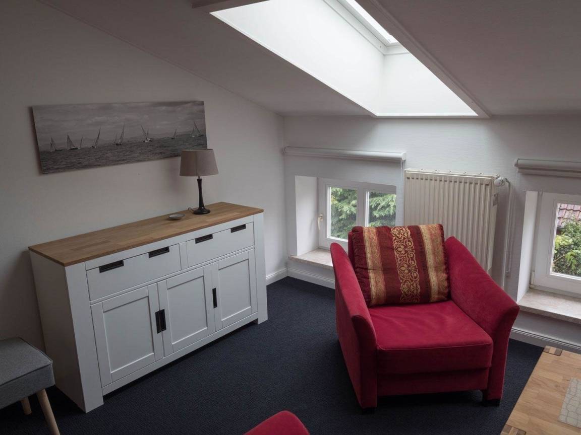Die gemütlich eingerichtete Wohnung hat einen großen Wohnraum mit offener Küche. Der Wohnbereich ist durch die vielen Fenster hell und bietet vom Sofa aus den Blick ins Grüne. Ausstattung mit SAT-TV, Radio das weitere Schlafzimmer hat 2 Schlafplätze. Die Küche ist mit allen Dingen für den Alltag ausgestattet.(Geschirrspüler, Kühlschrank mit Gefrierfach, Herd, Backofen und Kleingeräte) Vom Flur gelangen Sie ins Duschbad. Die Wohnung können wir auf Wunsch gern mit Kinderbett und Kinderhochstuhl aufrüsten. WLAN kostenlos