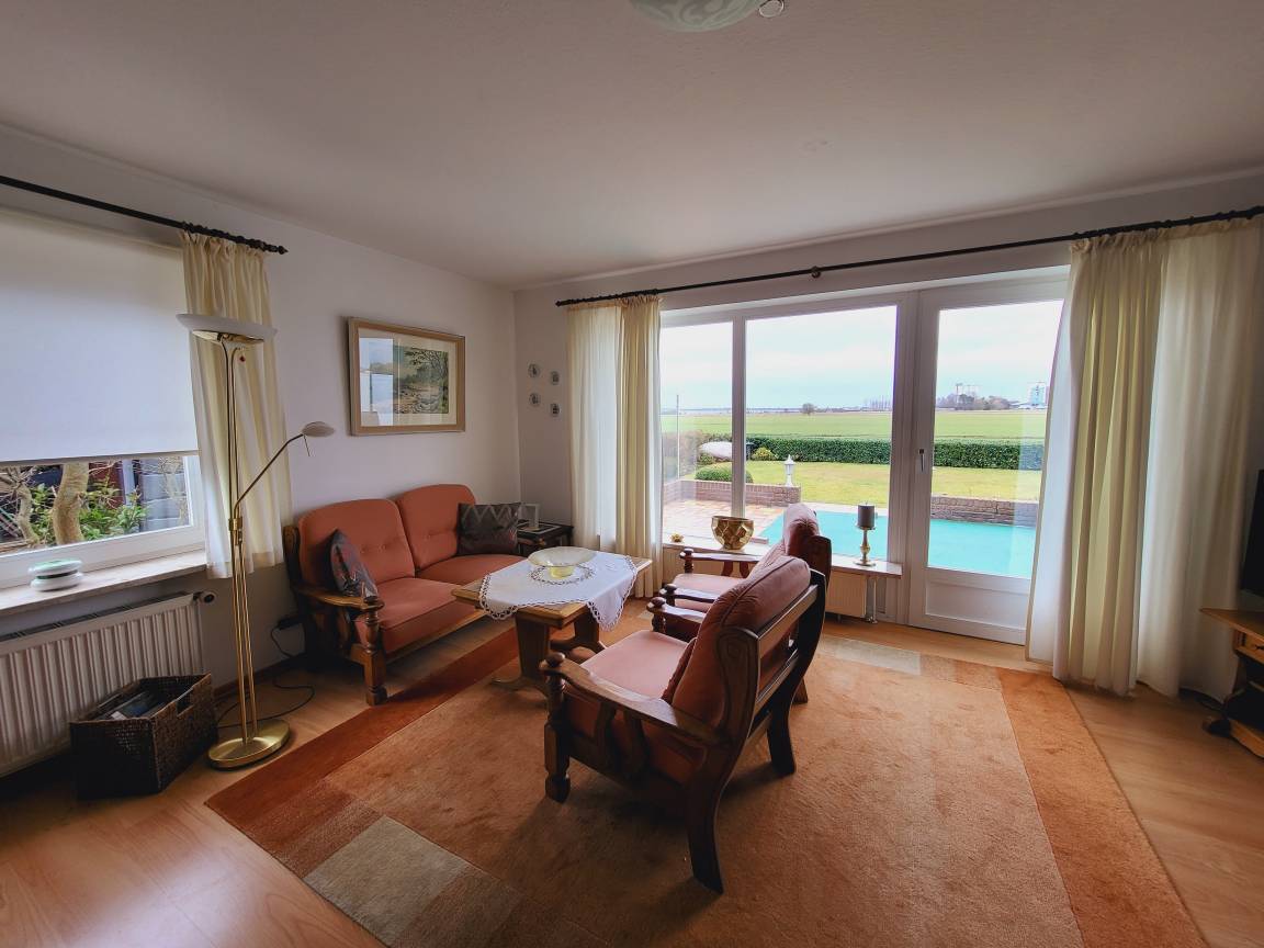 Diese gemütliche Ferienwohnung begrüßt Sie in ruhiger Lage und ist der ideale Ausgangspunkt für erholsame Urlaubstage auf Fehmarn. Der helle Wohnbereich lädt mit bequemer Einrichtung, TV und einem integrierten Schlafbereich mit Schrank-Doppelbett zum Entspannen ein. Von hier aus gelangen Sie direkt auf die Terrasse mit Gartenmöbeln und Blick ins Grüne – perfekt für sonnige Stunden an der frischen Ostseeluft.