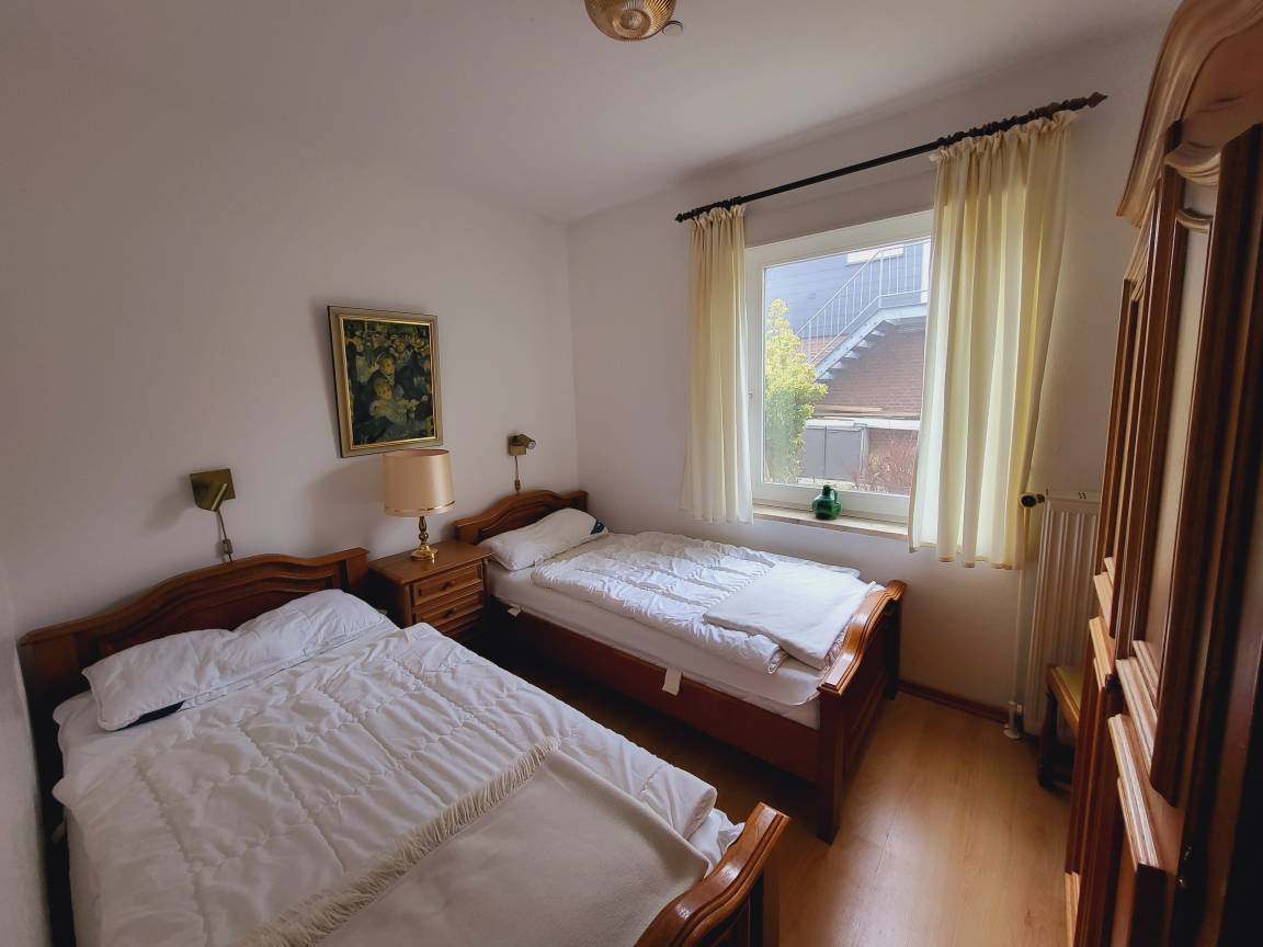 Schlafzimmer: 2 Einzelbett (je 90 x 190 cm), Kleiderschrank, Verdunkelung: Rollo, kein Platz für ein Babybett vorhanden