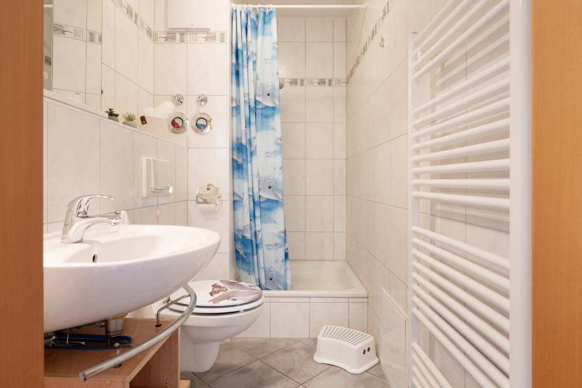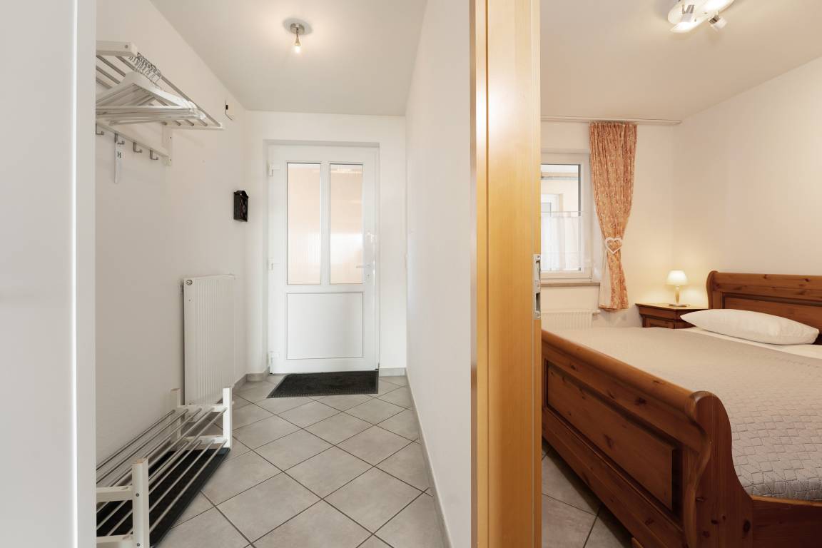 Strandnah im idyllischen Staberdorf: ruhige 2-Zimmer-Ferienwohnung mit ca. 43 m² Wohnfläche im 1. Stock mit Balkon für bis zu 2 Erwachsene und 1 Kind mit direktem Meerblick.
