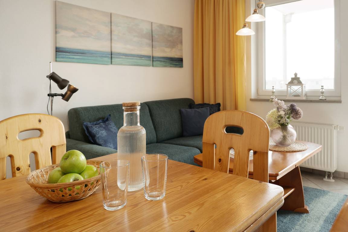 Nur rund 100 Meter von der Ostsee entfernt befindet sich diese schöne Wohnung in der Wohnanlage Ferienresidenz. Im gemütlich eingerichteten Wohnbereich erwartet Sie eine ausziehbarer Schlafcouch, die bei Bedarf als ein Schlafplatz fungiert, eine Essecke sowie eine offener Küchenzeile. Ein Fernseher mit Sat-Anschluss ist vorhanden. Das Schlafzimmer ist mit einem großen Doppelbett (200x200 cm) ausgestattet und garantiert geruhsame Nächte. Das innenliegende Duschbad ist hell gefliest und hat einen Handtuchwärmer. Das Highlight dieser Wohnung ist sicher der möblierte Balkon mit direktem Meerblick. Genießen Sie die Sonne von früh bis spät.