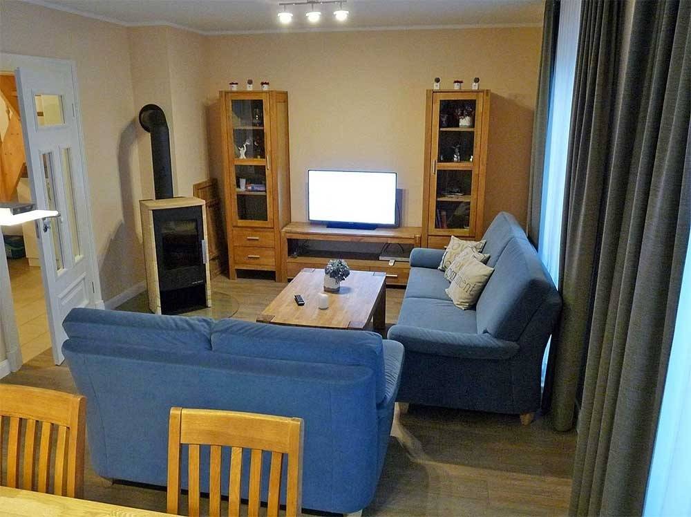 Im Wohnbereich gibt es einen Kaminofen.