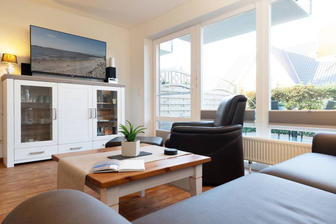 Diese geschmackvoll eingerichtete Wohnung ist der ideale Ausgangspunkt, um die Insel sportlich oder auch gemütlich zu erkunden. Egal ob mit dem Rad, zu Fuß oder auf Inlinern - die Rad- und Wanderwege sind optimal für aktive Ferien! Aber kommen Sie doch erst einmal herein: Der lichtdurchflutetet Wohnbereich lädt zum Verweilen ein. Ebenso die möblierte Terrasse - genießen Sie hier die frische Ostseeluft bei Sonnenschein. In der gut ausgestatteten Küche müssen Sie auf keinen Komfort verzichten - Spülmaschine, Toaster, Kaffeemaschine etc. verstehen sich von selbst. Wunderbar träumen werden Sie im separaten Schlafzimmer im bequemen Doppelbett. In dem modernen Duschbad lässt sich das Salz nach einem ausgiebigen Strandtag nochmal gut von der Haut waschen.