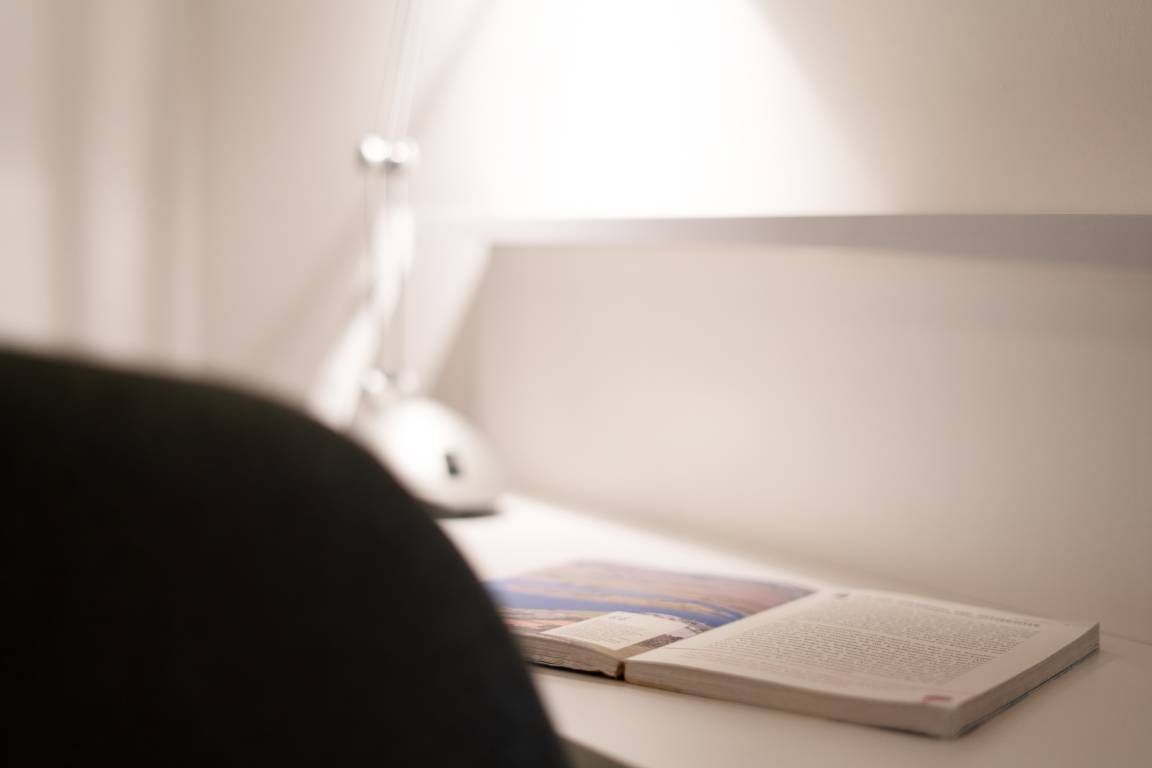 Schlafzimmer 3: 1 Einzelbett ausziehbar auf 1 kleines Doppelbett 2x 80 cm, Verdunkelung: Plissee