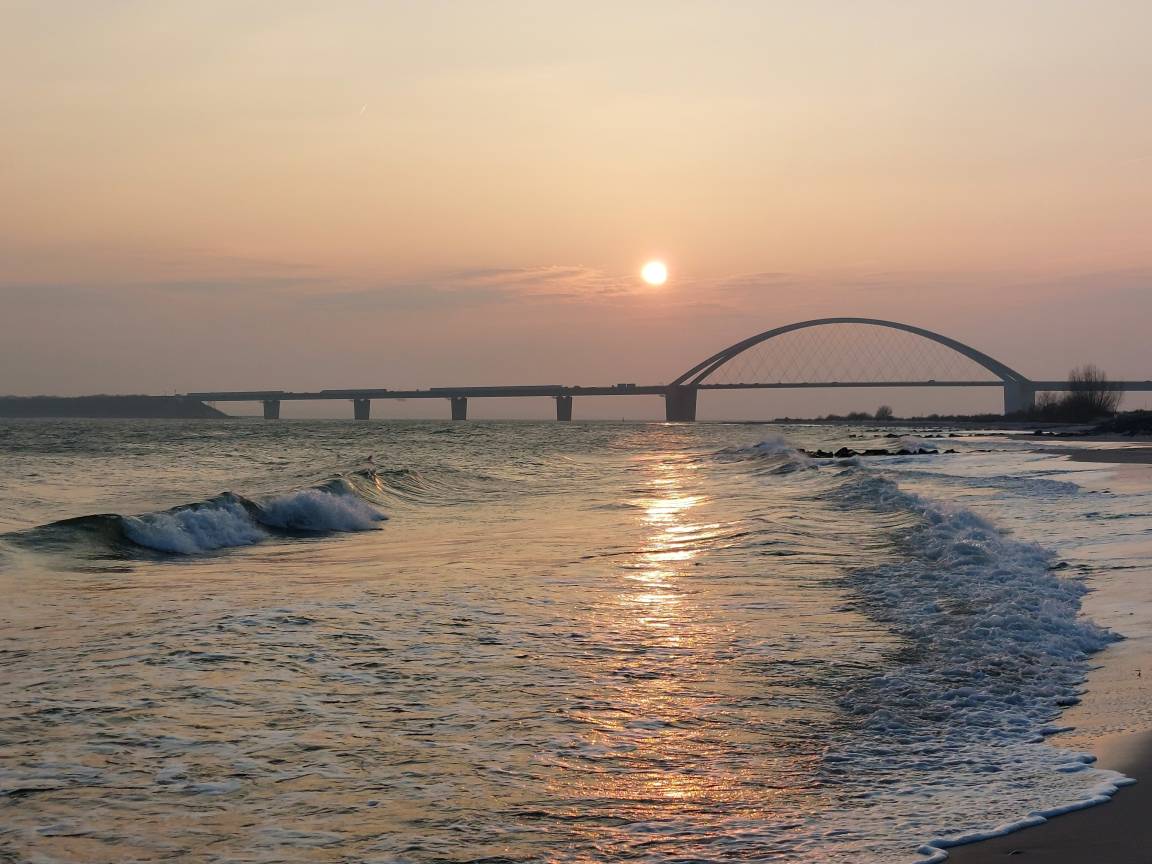 Harmonisch in die Landschaft eingefügt hat das kleine Örtchen Fehmarnsund ein romantisches Flair mit traumhaftem Blick über das weite Meer, auf die Fehmarn Sund Brücke (Kleiderbügel des Nordens) und das Festland.