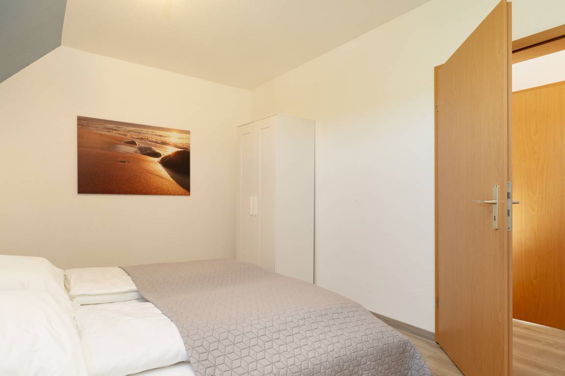 Schlafzimmer (1. OG): 1 Doppelbett (2x 90x200 cm), Kleiderschrank, Verdunkelung: Plissees und Vorhänge, Platz für ein Babybett