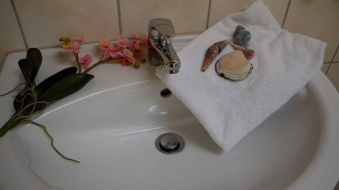 Kleines komfortables Duschbad mit Sitzbank in der Dusche. Handtuchwärmer für die von uns gestellten Handtücher und ein Fön stellen wir gern zu Verfügung.
