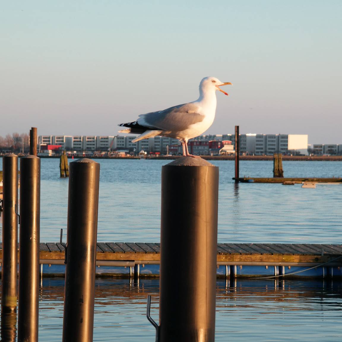 Sie haben freien Blick auf das Meer und das Hafengeschehen.