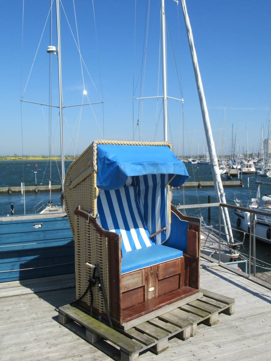 Im eigenen Strandkorb mit Blick über den ganzen Hafen Burgtiefe und das Meer - Fehmarn Hotspot-