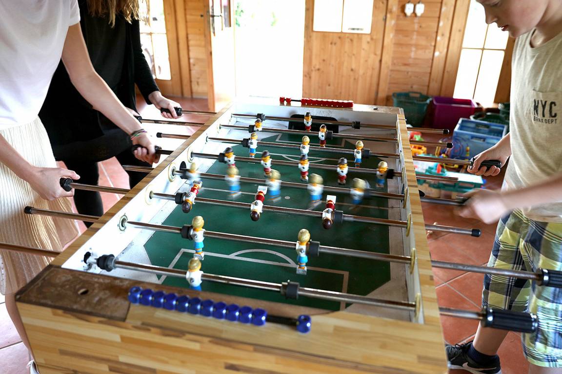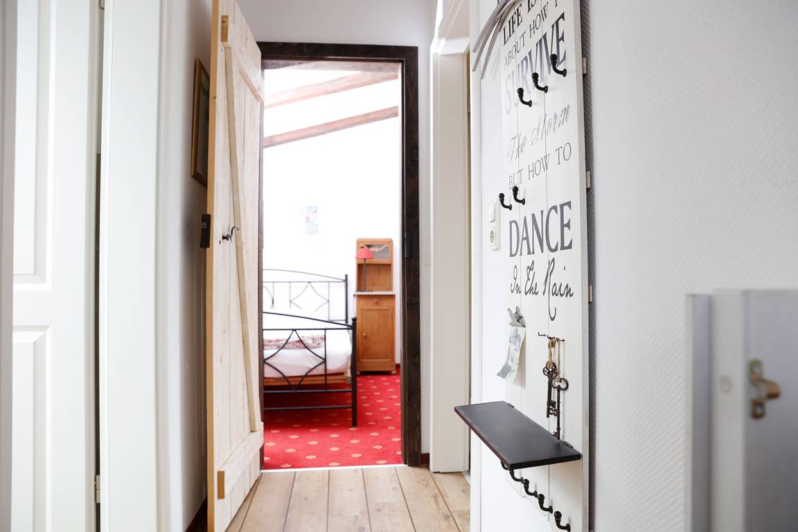 Die Ferienwohnung "Sperlings Lus" auf unserem Hof ist 47qm groß und liegt im 1. Obergeschoss unseres Bauernhofgebäudes aus dem letzten Jahrhundert. Ihr habt einen schönen Balkon mit Blick in den Garten, eine Küche mit gemütlichem Wohn- und Esszimmer, ein modernes Bad und ein Schlafzimmer mit Doppelbett und einem Schlafsessel. Mit bis zu 3 Personen könnt Ihr in der Hofbude stranden - bei Bedarf stellen wir gerne ein Babybett. Auch auf dem gesamten Hofgelände findet Ihr genügend Lieblingsplätze für Groß und Klein. Bei kühlerem Wetter könnt Ihr Euch in der Infrarotkabine ("Wohlfühlsauna") in unserer Scheune aufwärmen. Auf die Kleinen warten unsere Dinocars und andere Fahrzeuge, ein Spielplatz und Trampolin, eine Spielhalle, Tischkicker, Tischtennis, ein Spielzimmer und ein riesiger Garten zum Austoben. Außerdem freuen sich unsere Ziegen und Kaninchen auf einen Snack oder eine Streicheleinheit. Also: Auf gehts, einfach mal stranden!