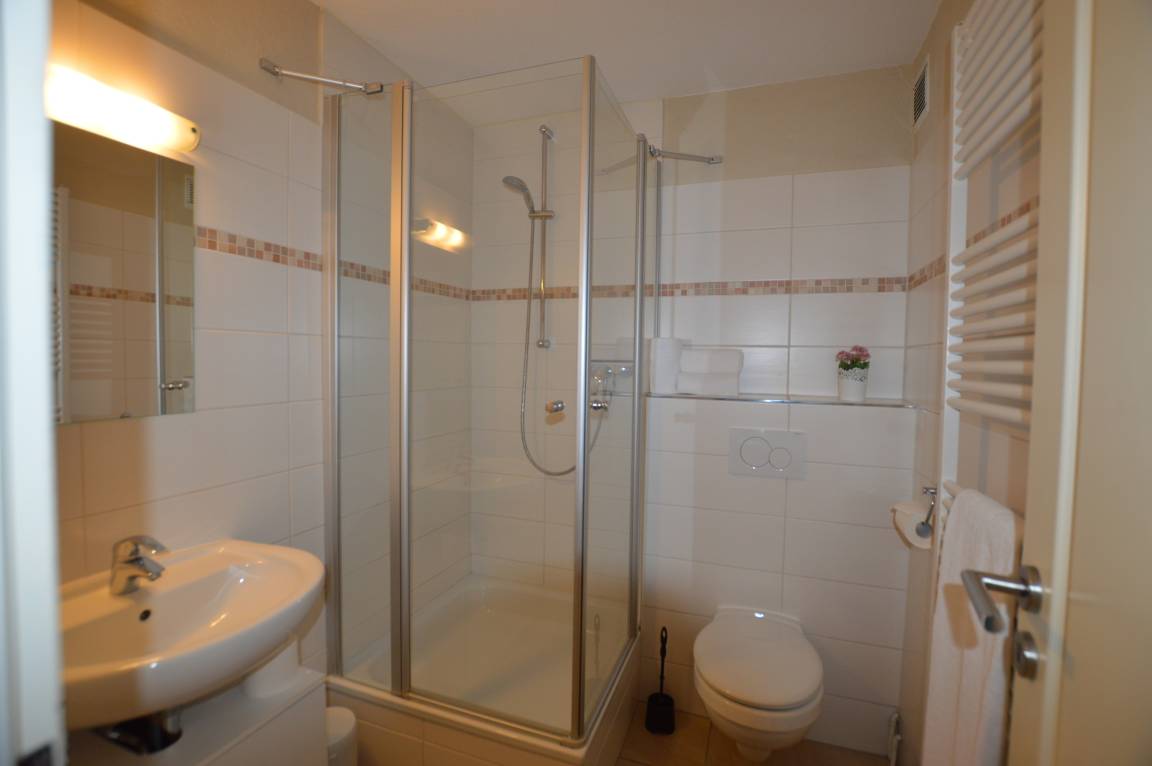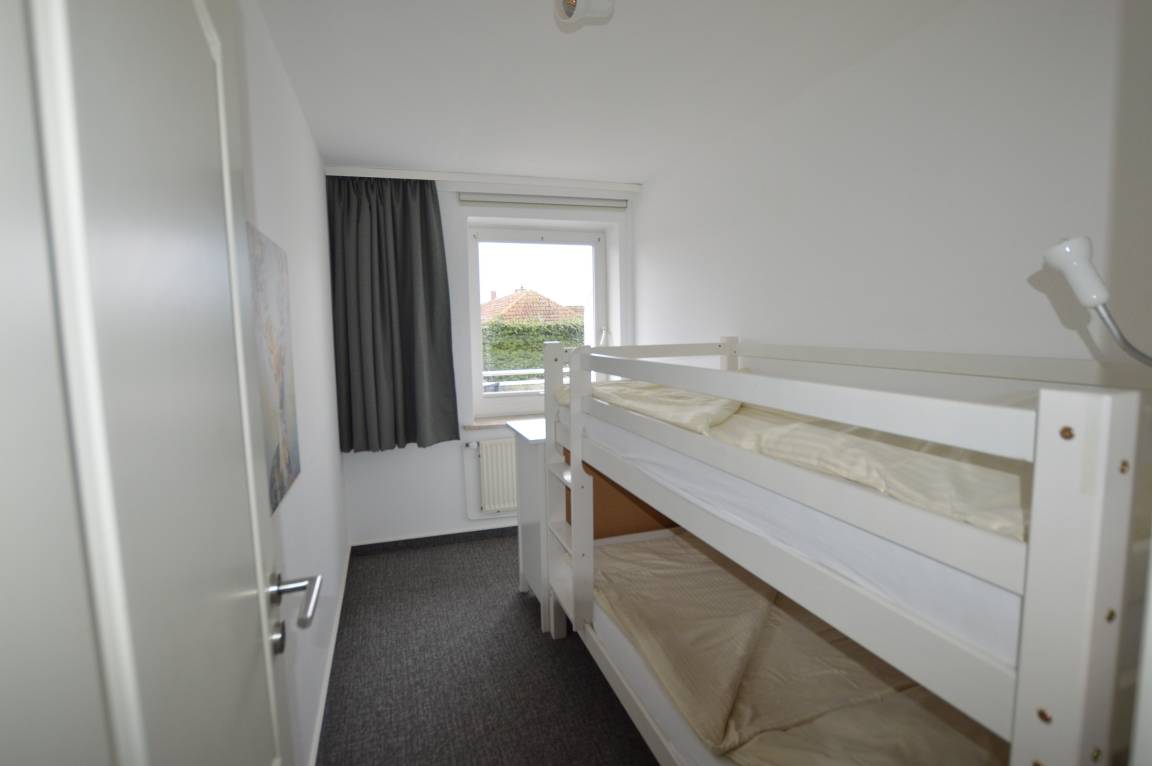 Ihre Wohnung erreichen Sie über das Treppenhaus. Sie befindet sich oben in der Mitte und somit in der Endetage im Gebäude. . Ihr großzügiger Wohn –Schlafraum ist voll ausgestattet und gut durchdacht. Ihr großes Bett (180 x 200 cm ) ist durch einen Vorhang vom Wohnraum getrennt. Das Kinderzimmer verfügt über ein Etagenbett. Ihr Duschbad, wie auch Ihre Einbauküche haben wir 2016 für Sie erneuert. Ihr herrlicher Westbalkon lädt zum Sonnen ein. Von hier aus haben Sie einen direkten Blick auf den idyllischen Innenhof und dem Spielplatz, auf dem Sie Ihren Kindern beim Spielen zusehen können.