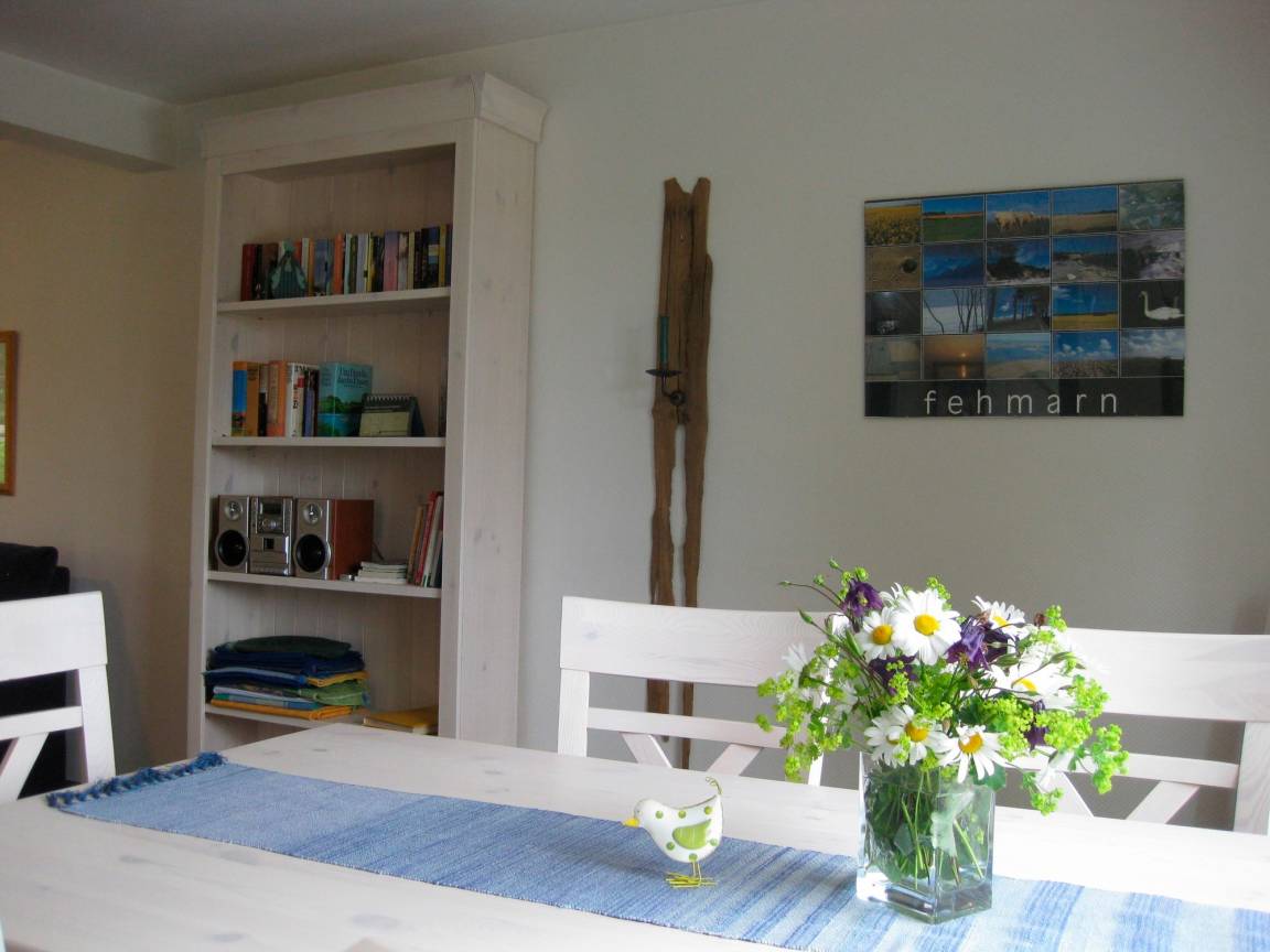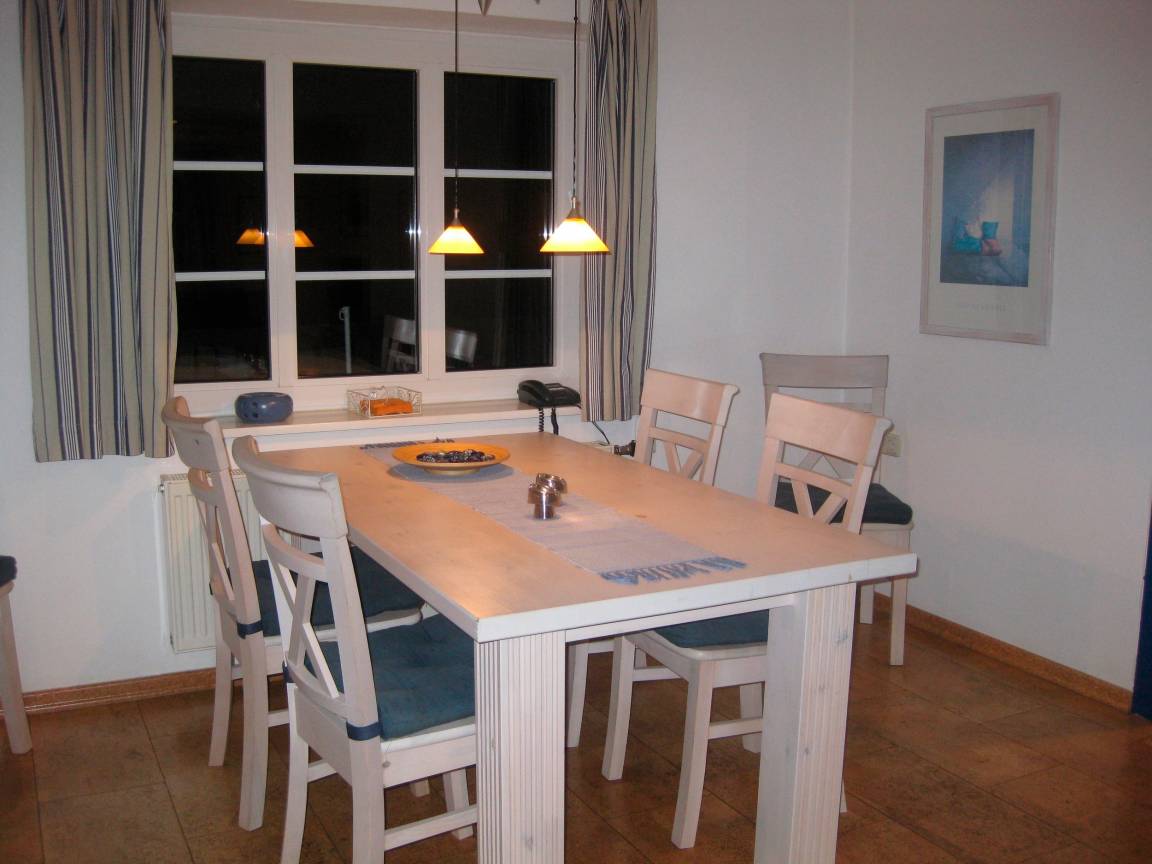 Erdgeschoss: Wohnraum mit Sitz- und Essecke, SAT-TV, DVD-Player, Stereoanlage und Kaminofen. Spiele, Bücher, sowie reichlich Infomaterial über unsere Sonneninsel sind vorhanden,